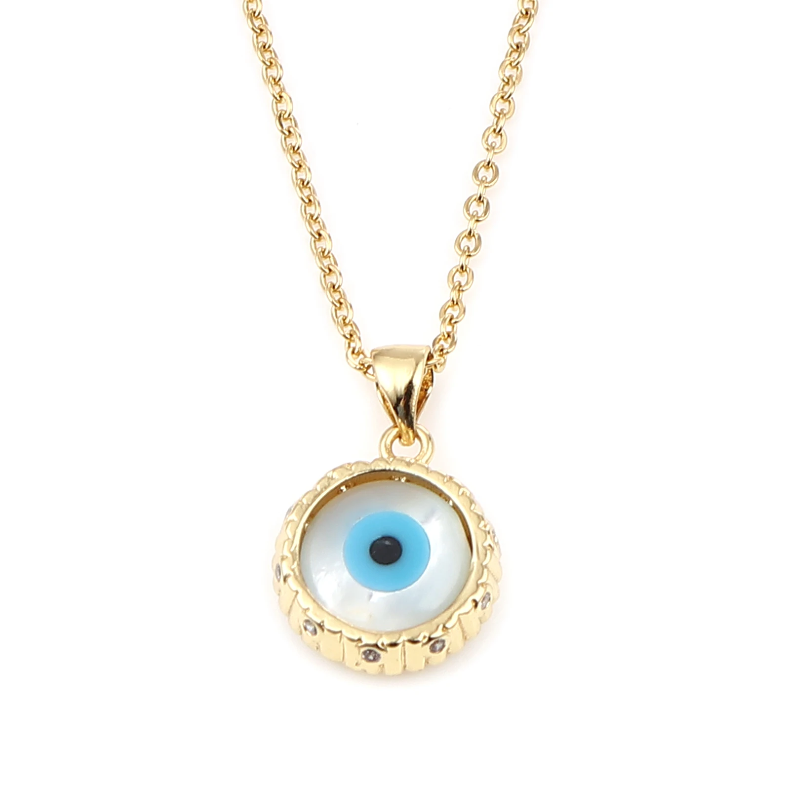 1 шт. ожерелье из нержавеющей стали и меди религиозный сглаза золотой цвет белый и синий круглый 44 см (17 38 ") длинный,