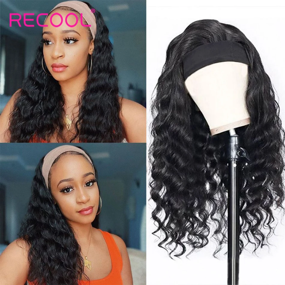 Recool глубокая волна парик с головной повязкой человеческие волосы...