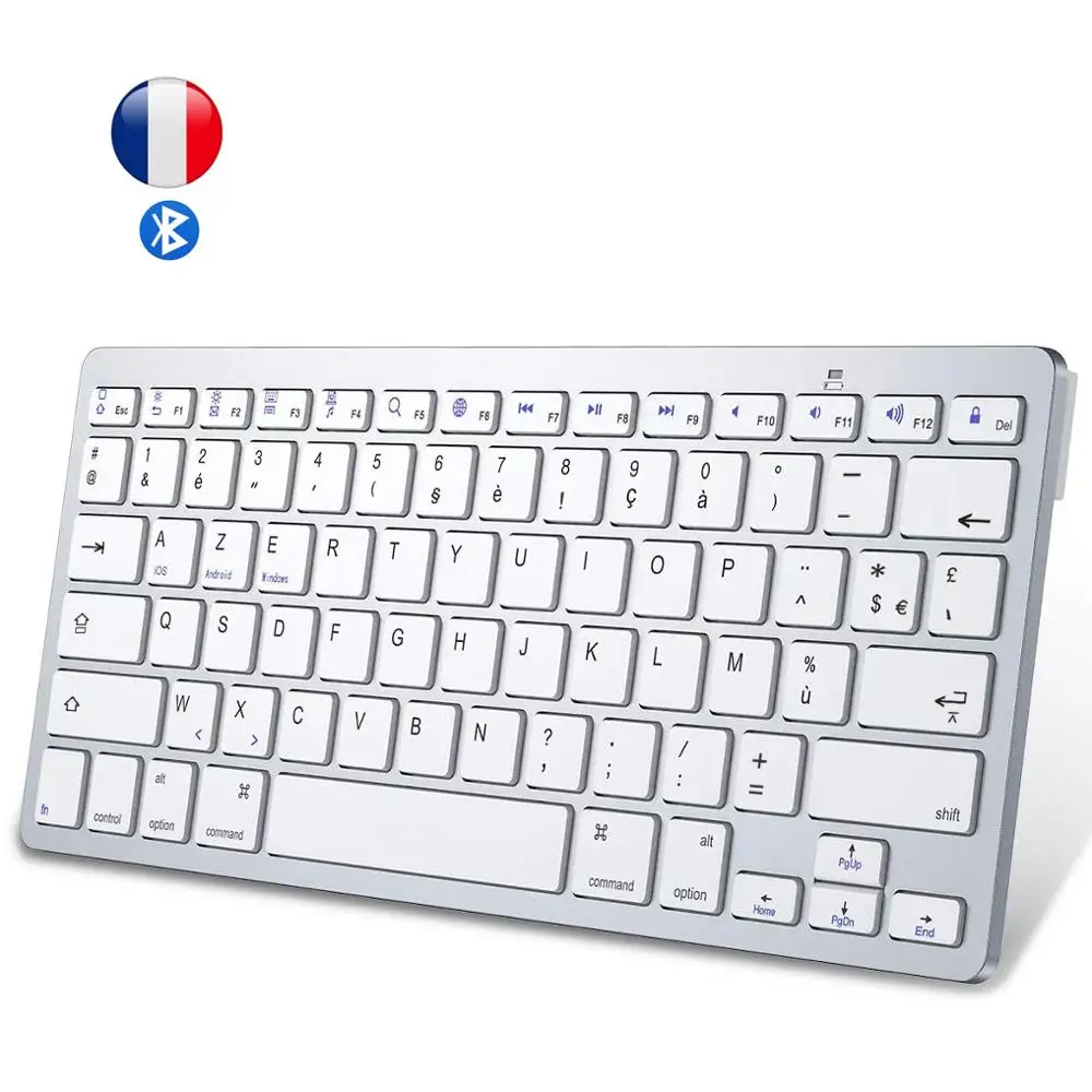 Клавиатура AZERTY с французской раскладкой, портативная тонкая клавиатура с Bluetooth для iPad, iOS, Android, Windows, Smart TV