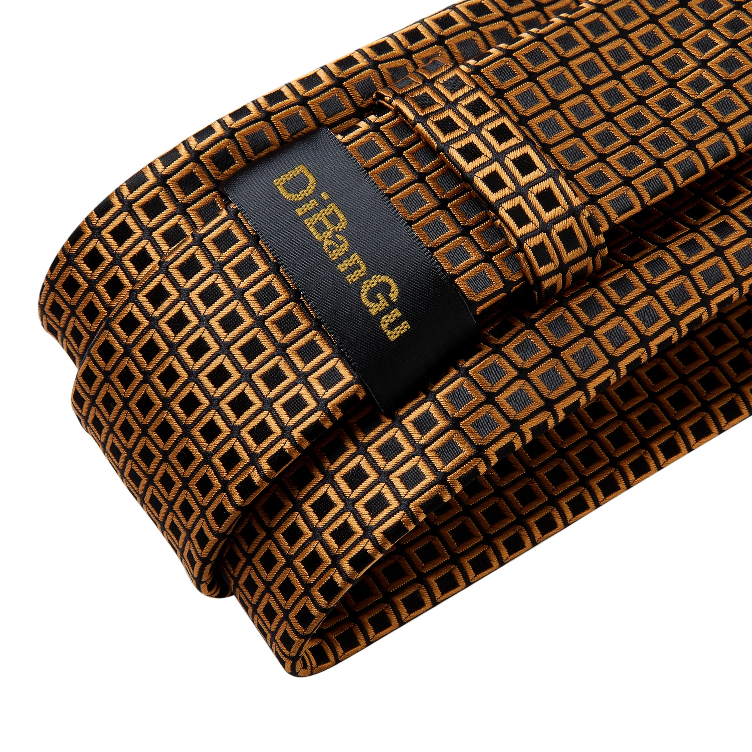 Мужской галстук 8 см, деловой ГАЛСТУК в черно-золотую клетку, носовой платок, кольцо для галстука, официальные свадебные аксессуары для галстуков, Gravatas, мужской подарок, DiBanGu