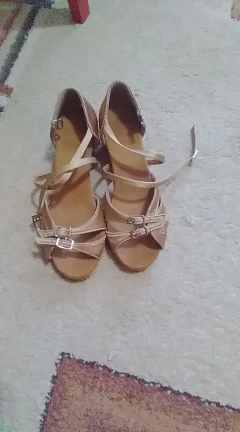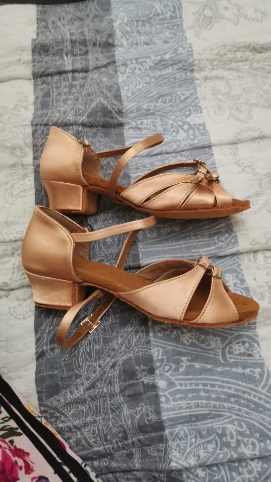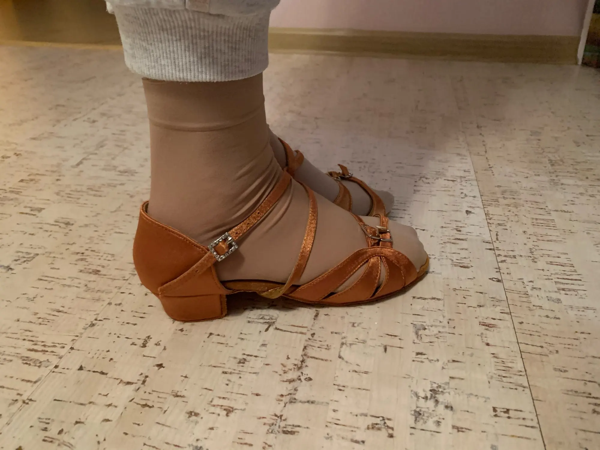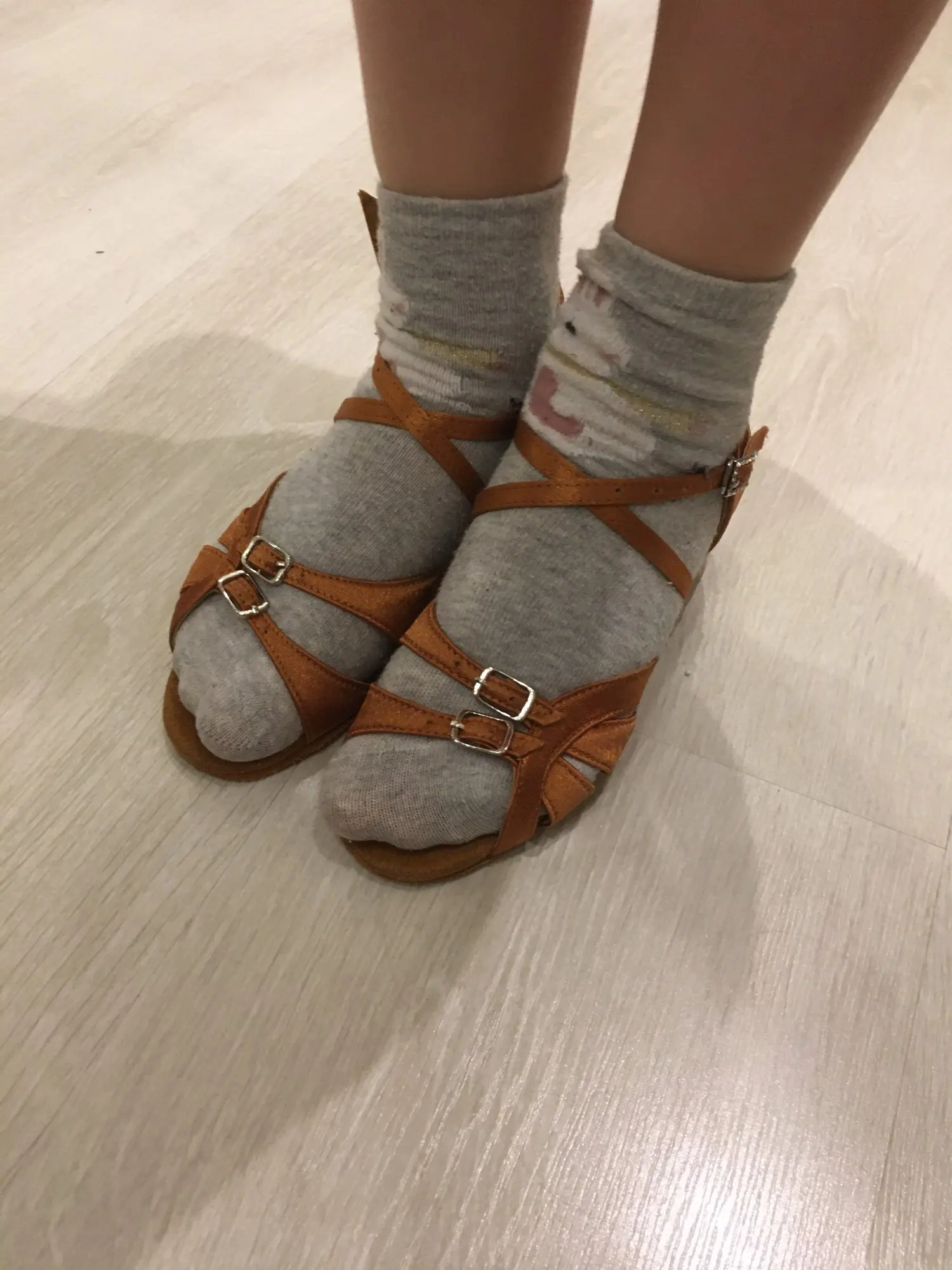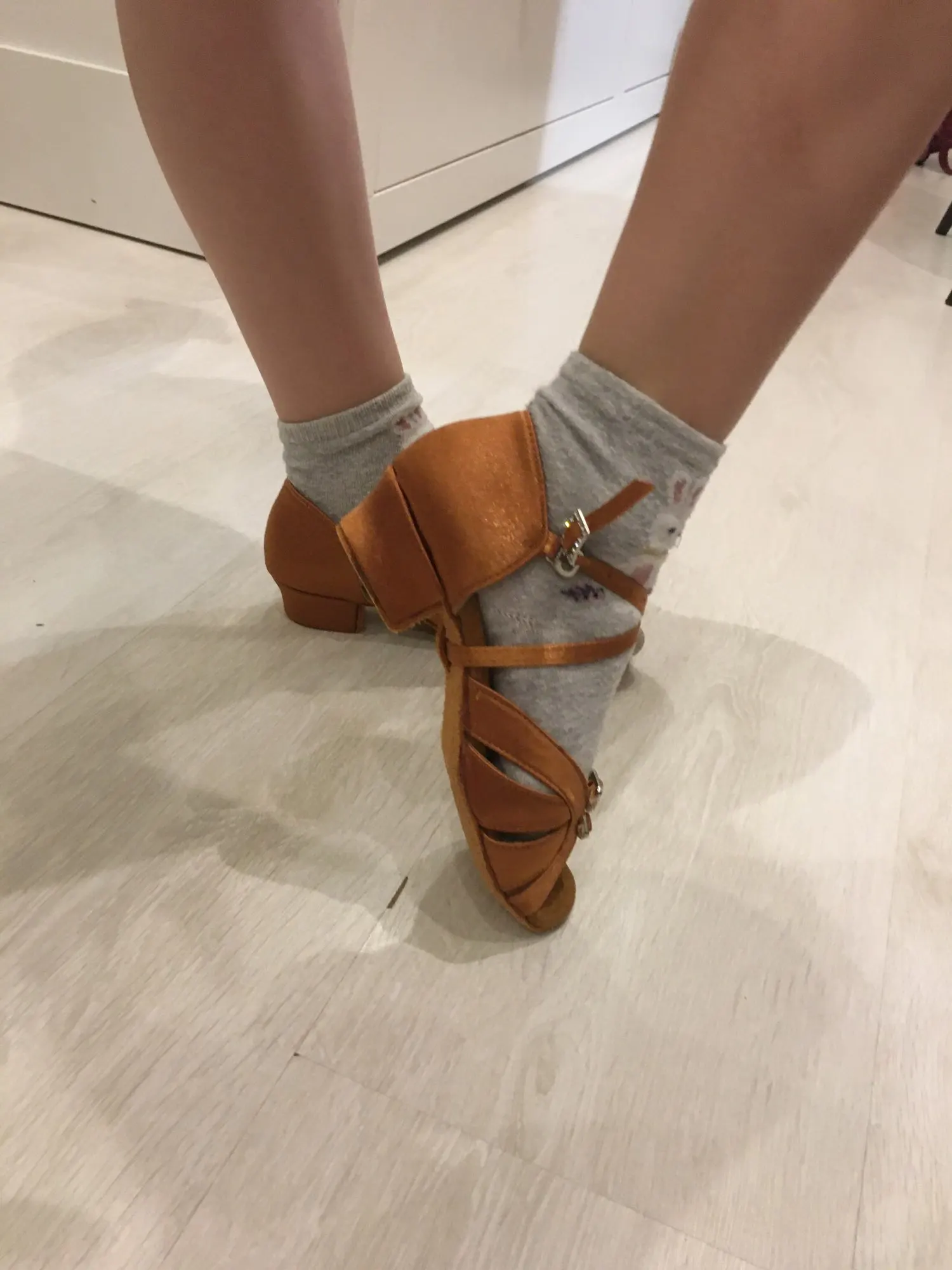 Очень быстрая доставка в Санкт-Петербург- на 3-й день после заказа принёс курьер домой. Туфельки очень хорошего качества- аккуратно прошиты и проклеены, запаха не было, уже танцевали несколько занятий. На ногу 19,7мм заказала два соседних размера- 13 (рассчитан на 20,5 мм) и 3,5 (21мм). Решили оставить 3,5- он с запасом около 1 см, а размер 13 вообще без запаса и пятке было тесно. Удобно, что ремешки по ноге регулируются.