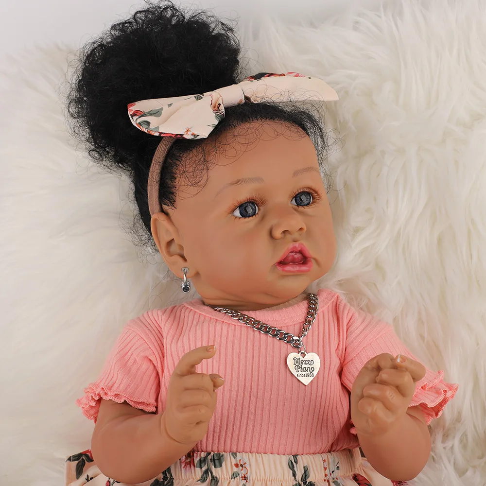 22 дюйма имитация Bebe Reborn Boneca 58 см силиконовая кукла для всего тела Черная мягкая виниловая игрушка Saskia для маленьких девочек рождественские подарки