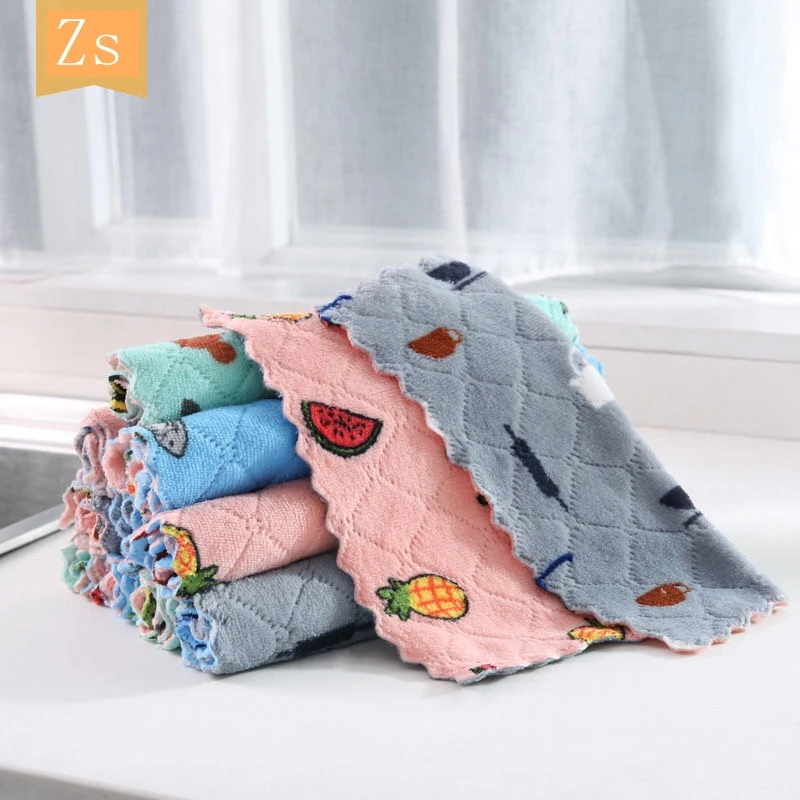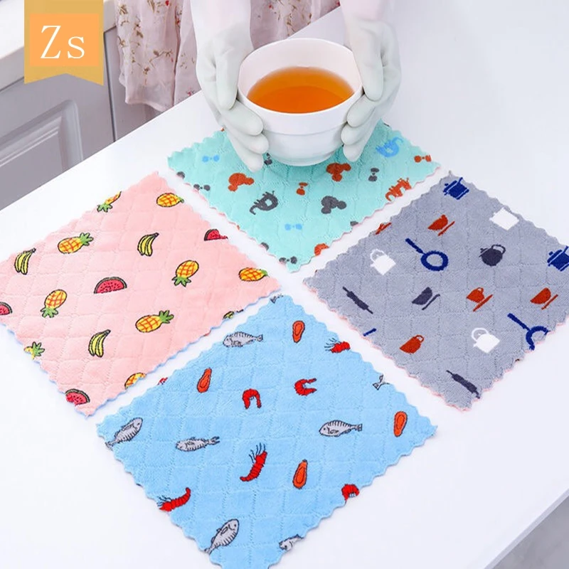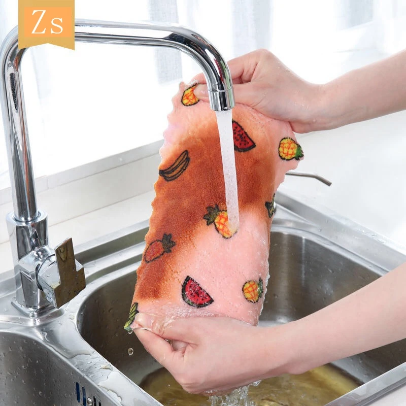 Тряпичное кухонное полотенце с принтом, принадлежности для мытья посуды, двухстороннее кухонное полотенце, специальный мягкий домашний инструмент, домашняя кухня, ванная комната