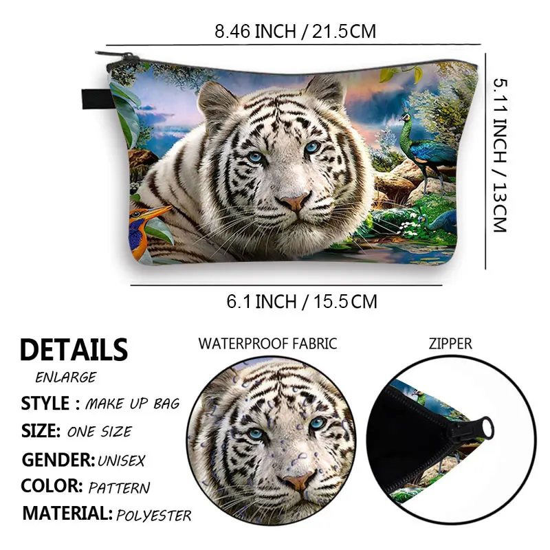 Косметичка с принтом белого тигра, модная косметичка, косметичка на молнии, органайзер, дорожная косметичка для девушек, мини-сумка
