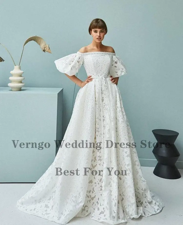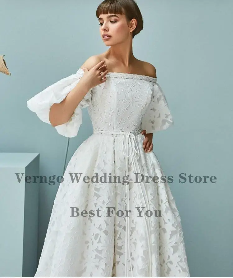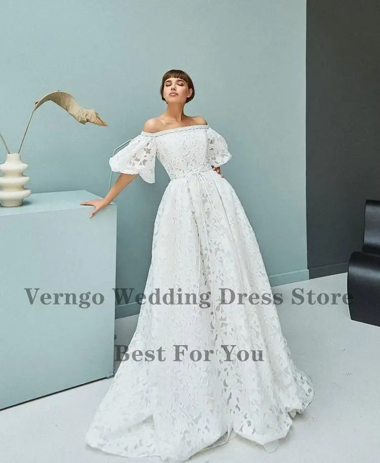Женское кружевное платье Verngo, винтажное платье невесты трапециевидной формы с длинными рукавами-фонариками и вырезом лодочкой, 2021