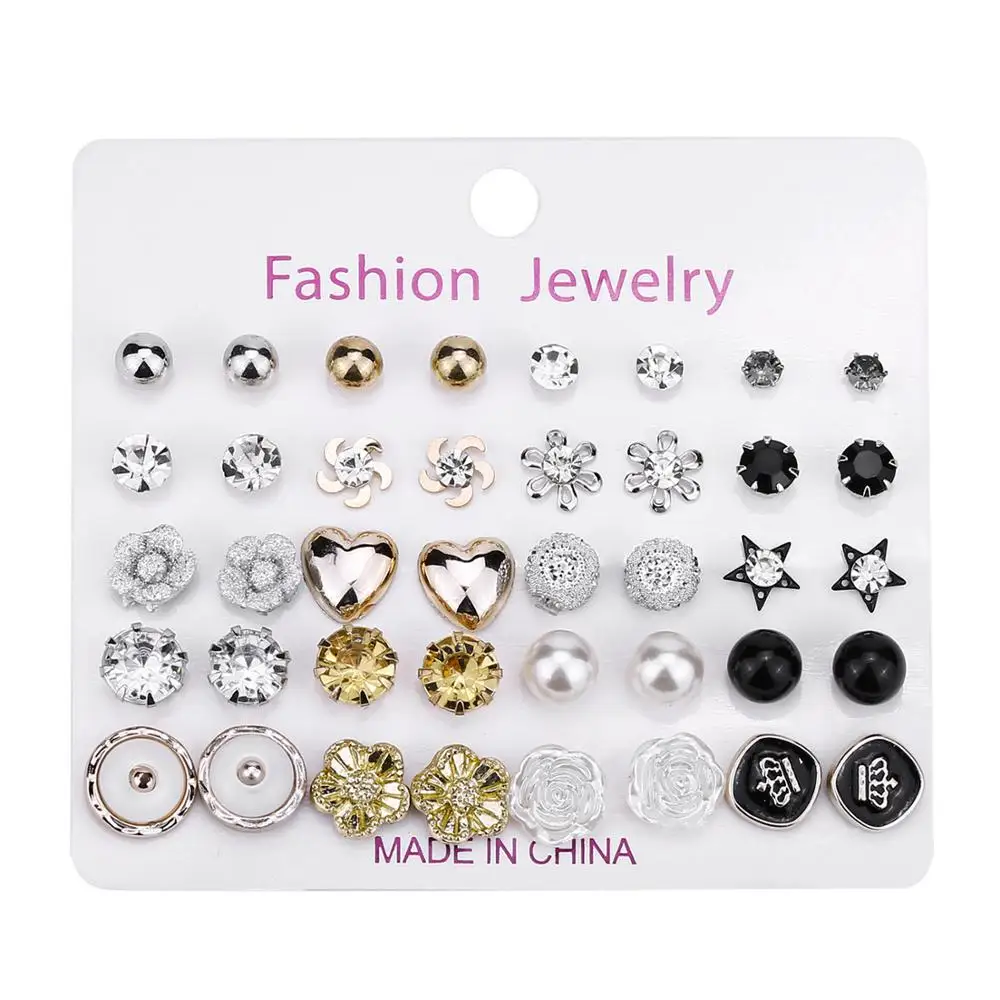 12 паркомпл. серьги для женщин перламутровые серьги из горного хрусталя серьги-гвоздики набор небольших сережки oorbellen voor vrouwen