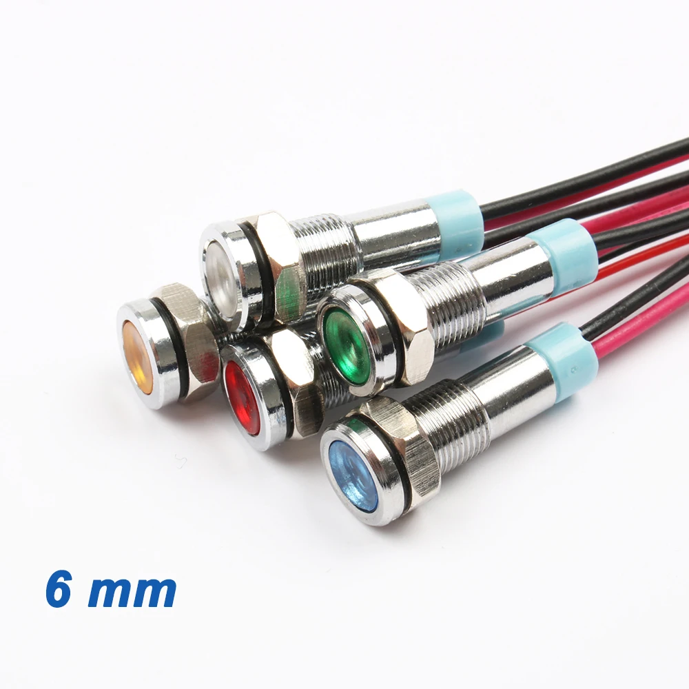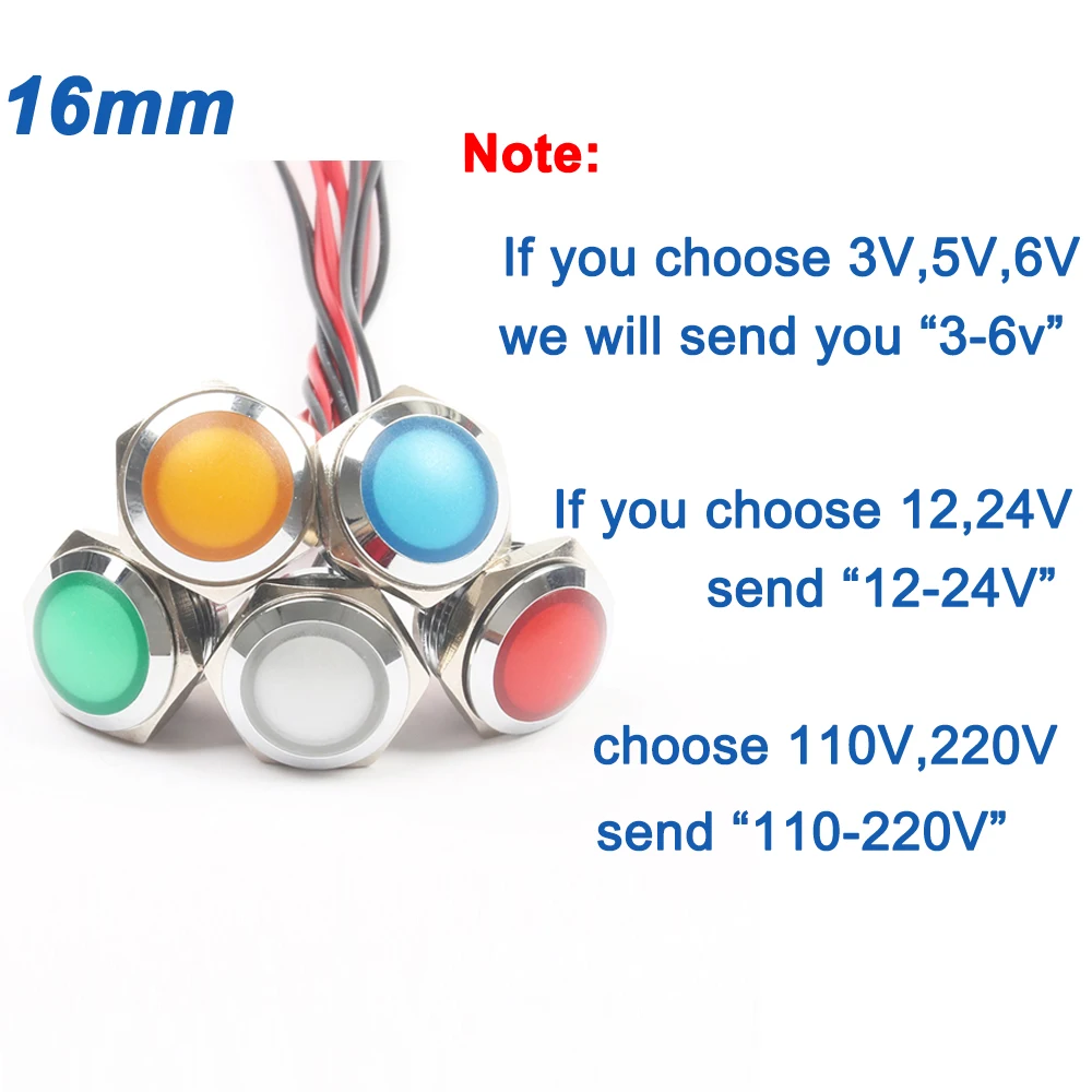 Металлический Предупреждение льный индикатор, 68101216 мм, водонепроницаемый, IP67, сигнальная лампа, контрольные провода, переключатель, 3 в, 5 В, 12 В, 220 В, красный, синий, 1 шт.