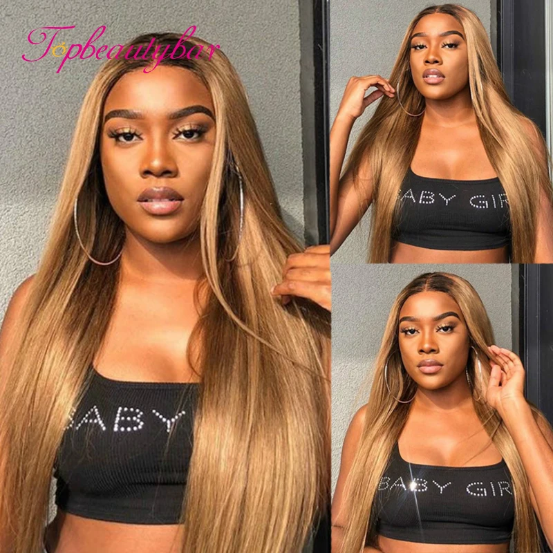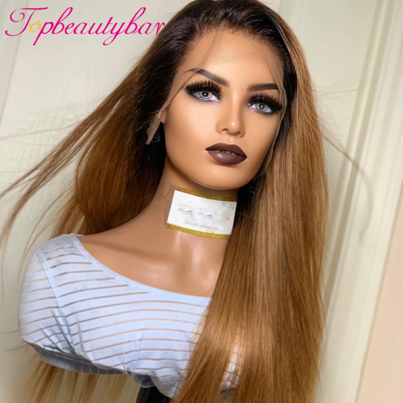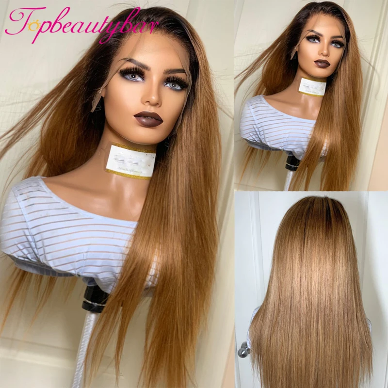 Цветные 1b/27 Ombre светлые парики из натуральных волос на шнурке для женщин 180% бразильские прямые парики Remy