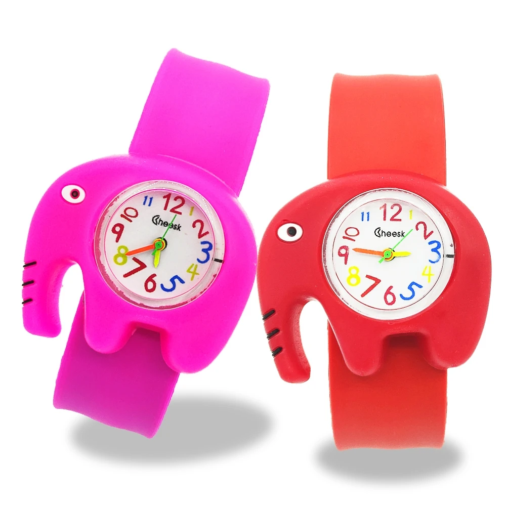 Часы детские, аналоговые, электронные, с рисунком слона, леопарда, ...
