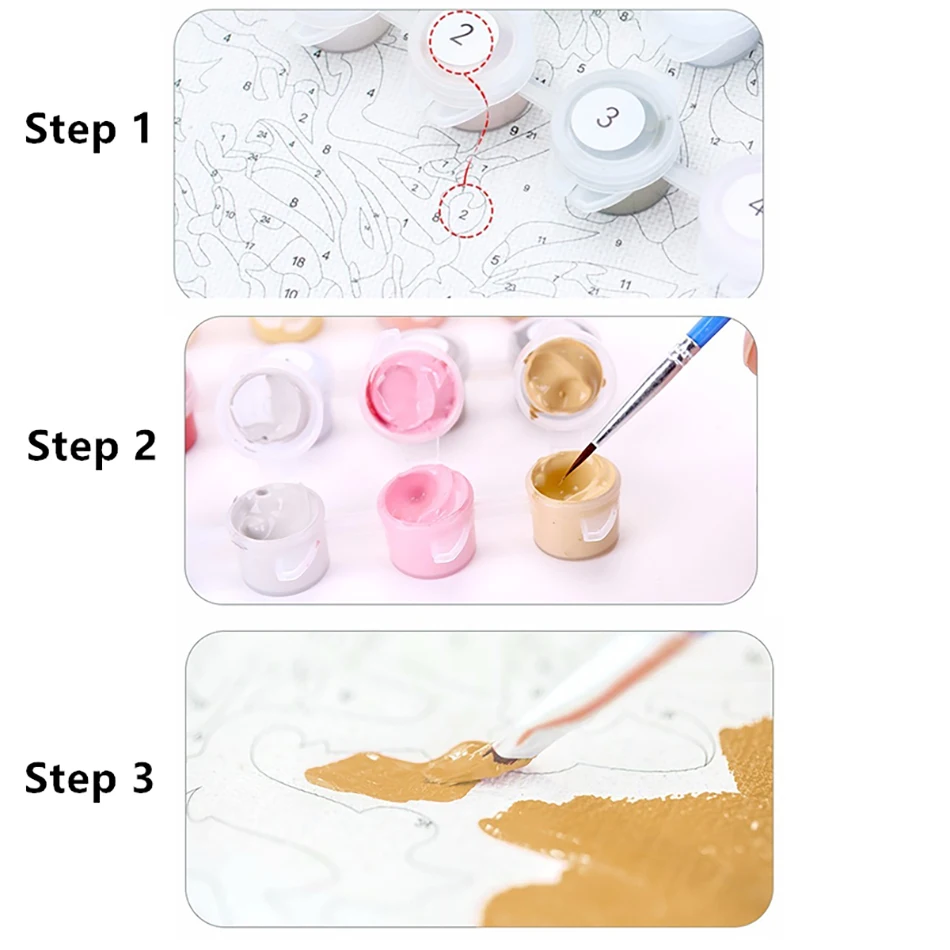 Размер: 40x50 см; 50x65 см; 60x75 см Рамка: без рамки; Рамка «сделай сам»; Готовая рамка Комплекпосылка ция: Льняной холст; 3 кисти; 1 набор акриловых красок; Инструкция; Контрольный лист; Рамка; Вешалка; Винты Примечание: 1. Измерения проведены вручную, допускается погрешность в 0,5-1 дюйм. Если вы не уверены, пожалуйста, свяжитесь с нами! 2. Из-за разницы в компьютерных миниатюрах цвет может немного отличаться от изображения. 3. Не Законченная картина, она будет необходимо раскрасить самостоятельно. Спасибо!