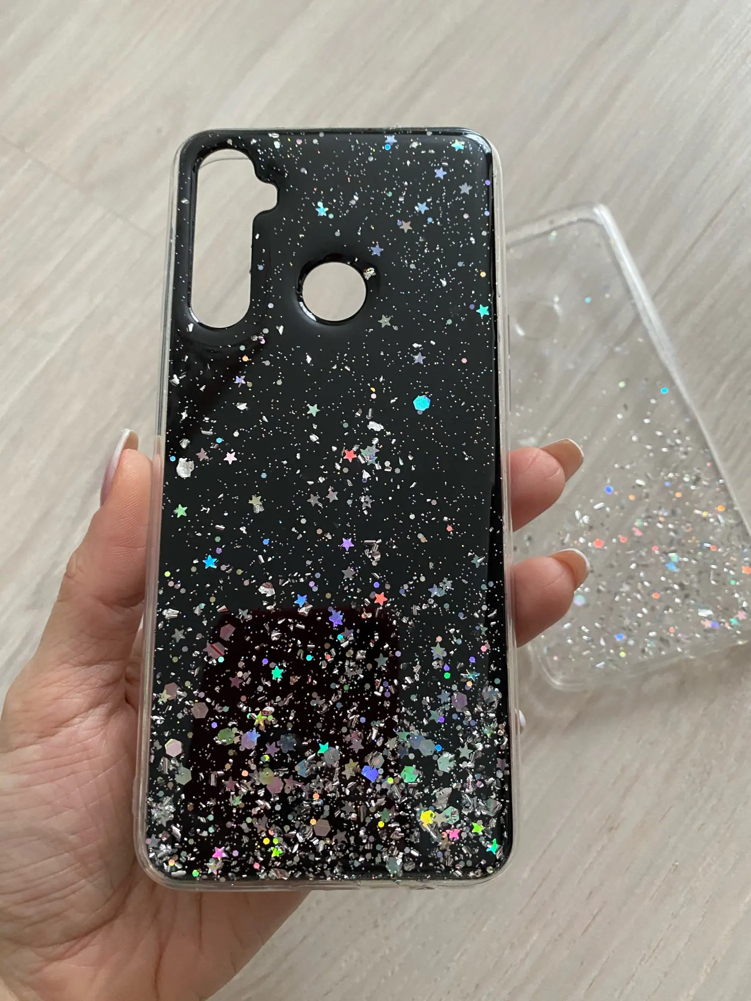 Чехол пришел быстро. Взяла прозрачный с блёстками, смотрится на телефоне хорошо. Только конечно Я думала что это блестяшки в воде при повороте чехла они двигаются. Но это лишь мои ожидания, сам товар хороший