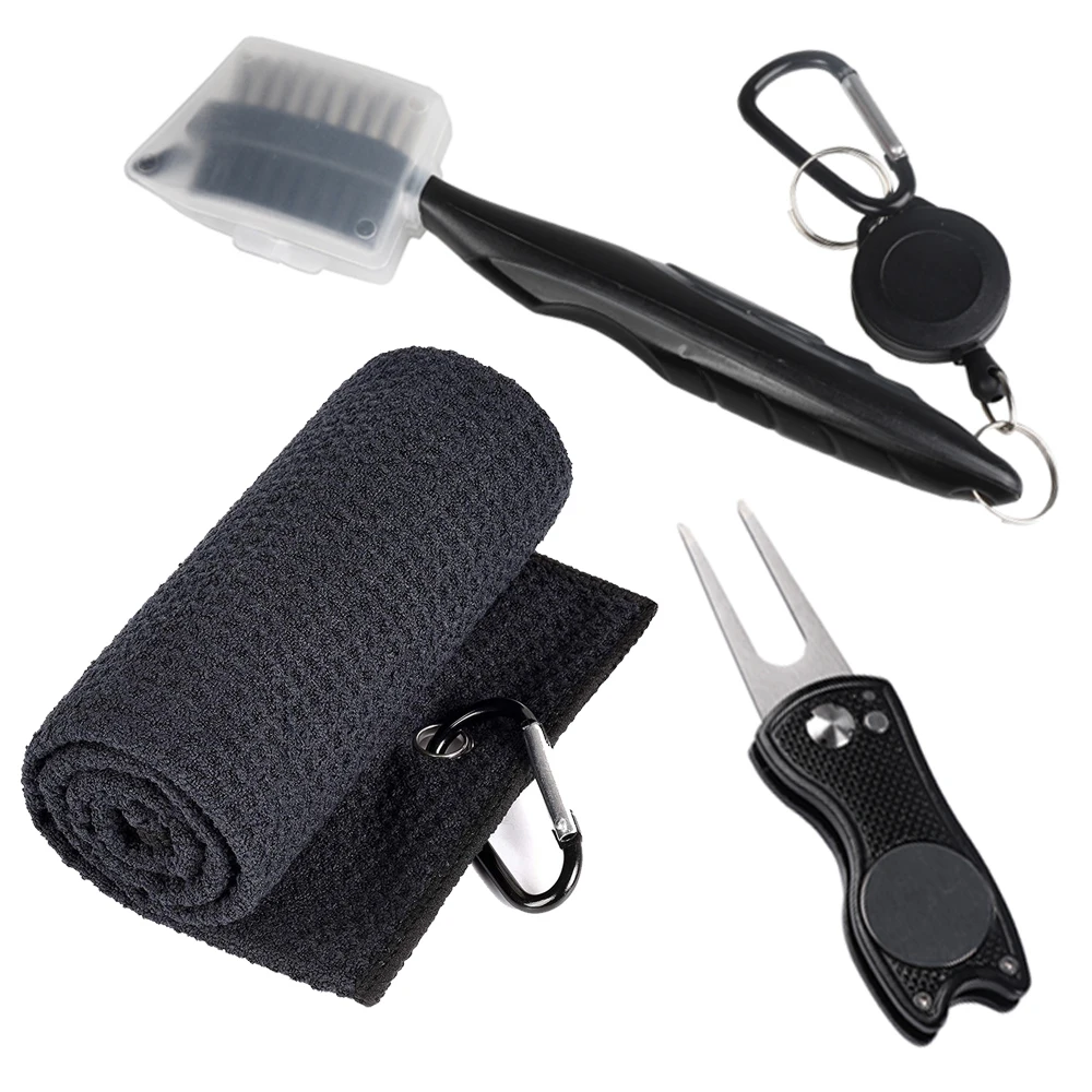 Микрофибра Вафельный узор трехслойное полотенце для гольфа Набор кистей с клубным очистителем канавок Зеленая вилка для гольфа