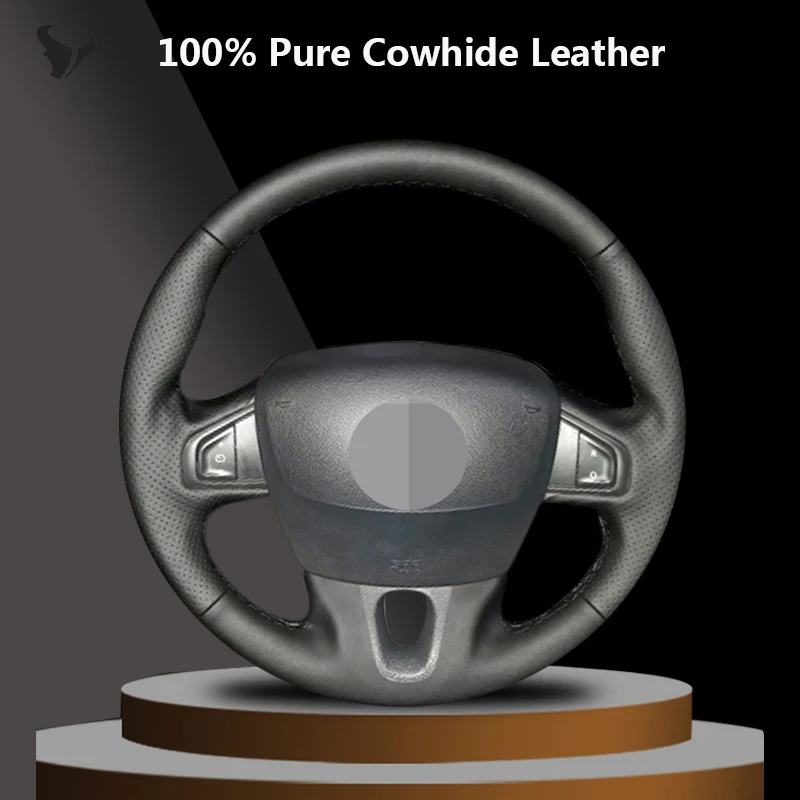 Ручная работа черная крышка рулевого колеса из натуральной кожи для Renault Fluence ZE 2009-2016 Megane 2009-2014 Scenic 2010