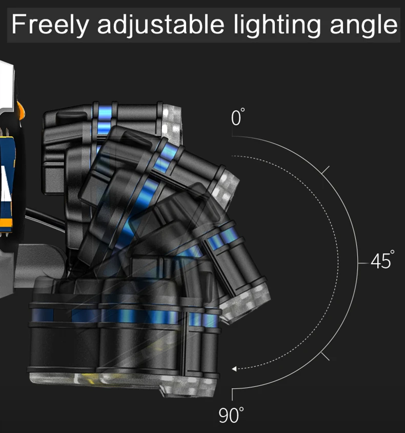 8 режимов освещения: светодиодный налобный фонарь имеет 2 кнопки режимов для управления 8 режимами для универсального использования. ①Нажмите кнопку «светодиодный режим», вы можете управлять режимами дальнего света, бокового луча, всего луча, стробоскопа SOS. ②Нажмите кнопку дополнительного режима COB, вы можете управлять режимами сильного луча, теплого луча, красный светильник, красный стробоскоп SOS.