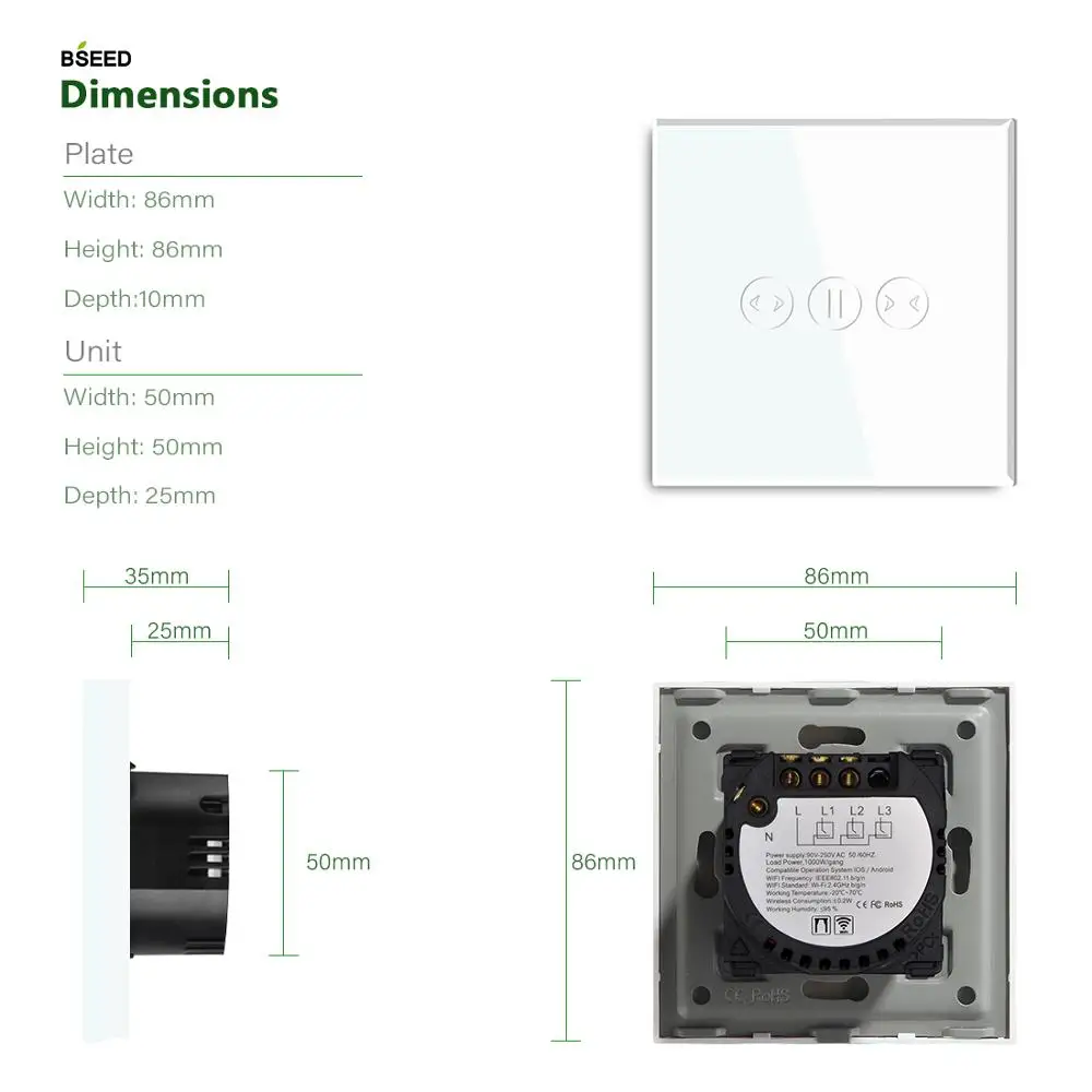 Настенные переключатели для штор BSEED с Wi-Fi, сенсорные переключатели с управлением через приложение Google Alexa Tuya, с нулевым проводом