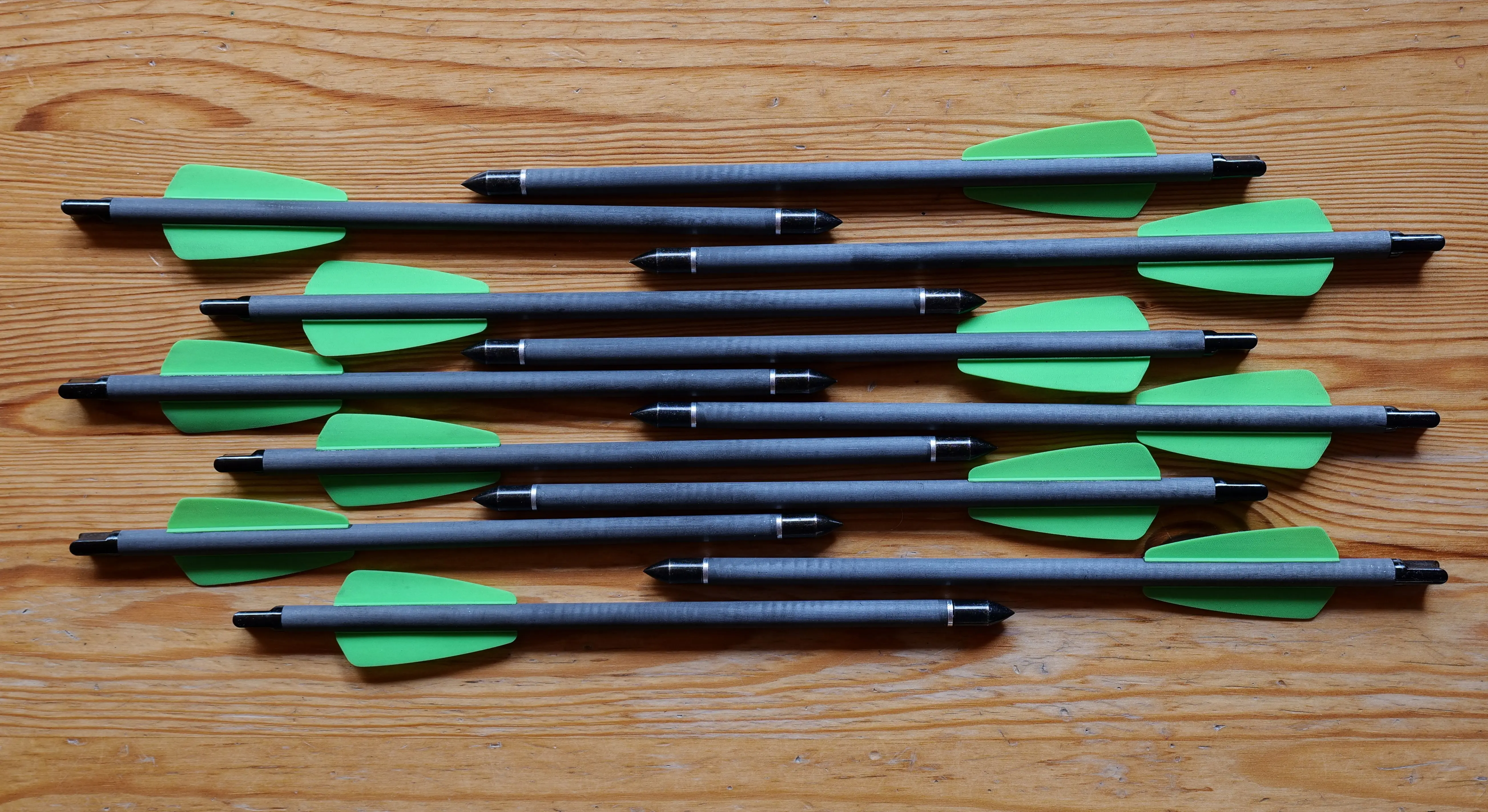 Хорошие стрелы. Я не снимал все, но те, что я сделал, были хороши. Наконечники были прочно приклеены к стрелке. Они не сломались даже при съемке в дереве и вытягивании стрелы. Кажется, прочные стрелы.