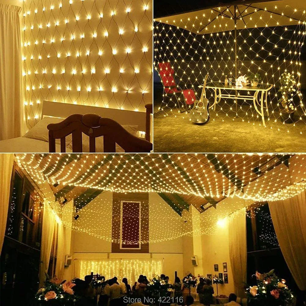 Рождественская сетчатая светодиодная гирлянда 1,5*1,5 м, 3x2 м, 10x...