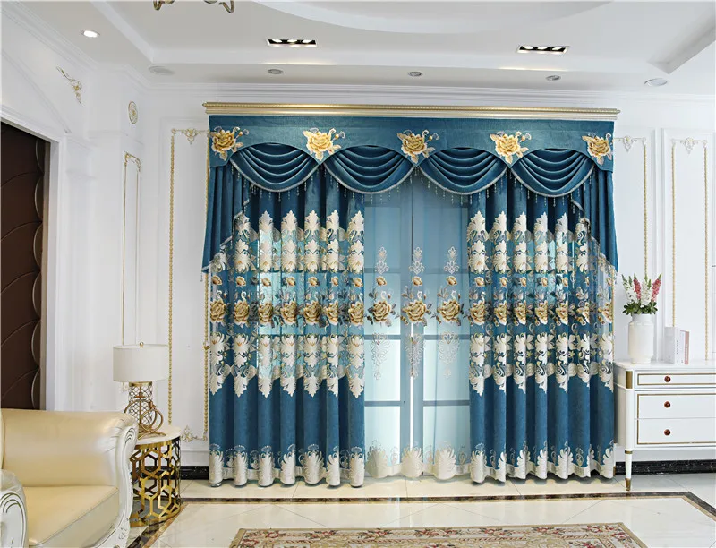 Шторы с вышивкой винно-красного и синего цветов в европейском стиле для гостиной, спальни, гостиницы, квартиры