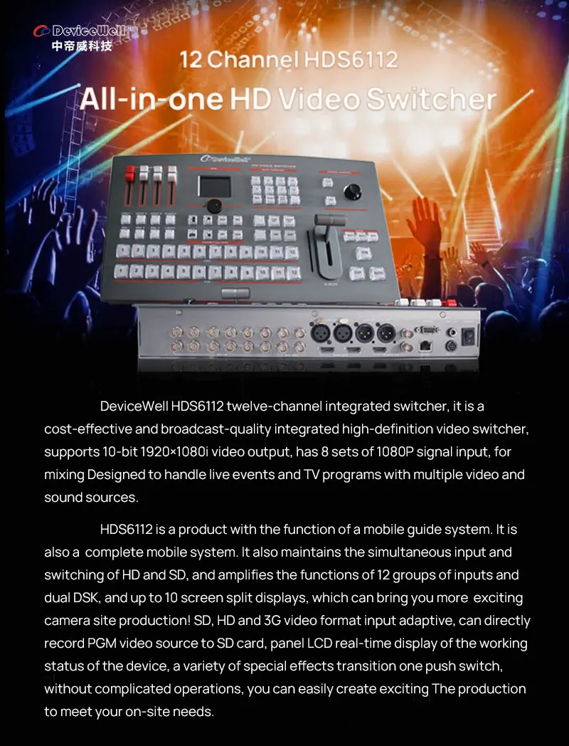 Видеопереключатель DeviceWell HDS9112 12-канальный для прямой транс...
