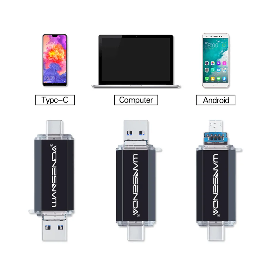 Флеш-накопитель WANSENDA OTG USB 3 в 1, флешка USB 3,0, Type C, Micro USB 512 ГБ, 256 ГБ, 128 ГБ, 64 ГБ, 32 ГБ, высокоскоростная