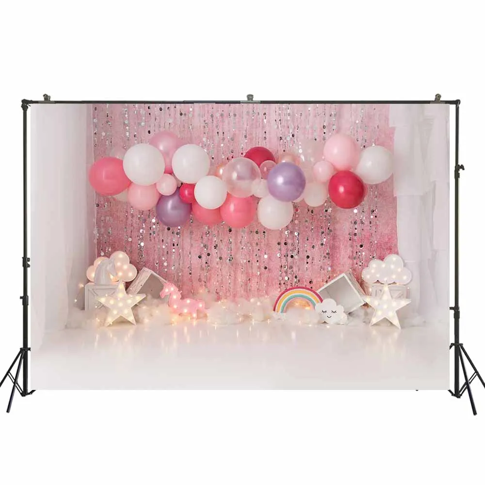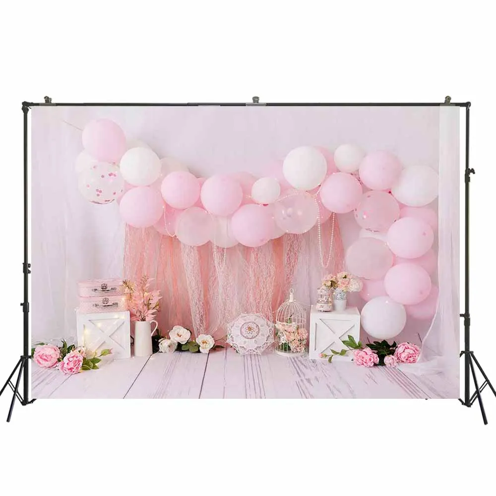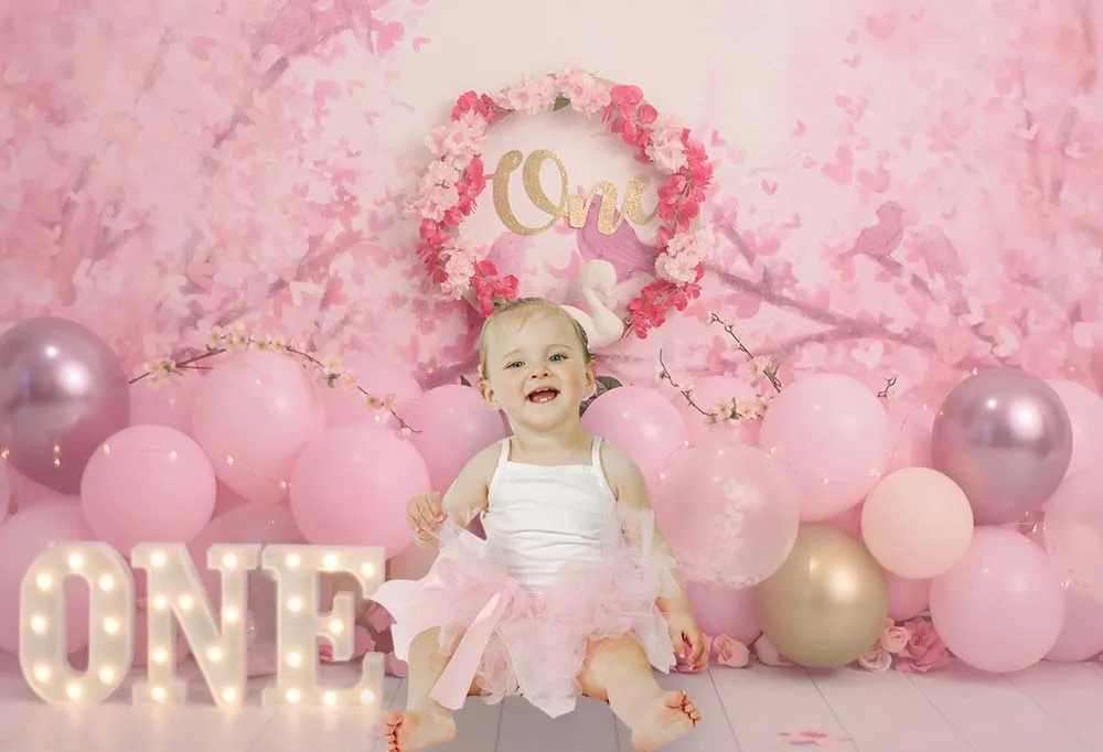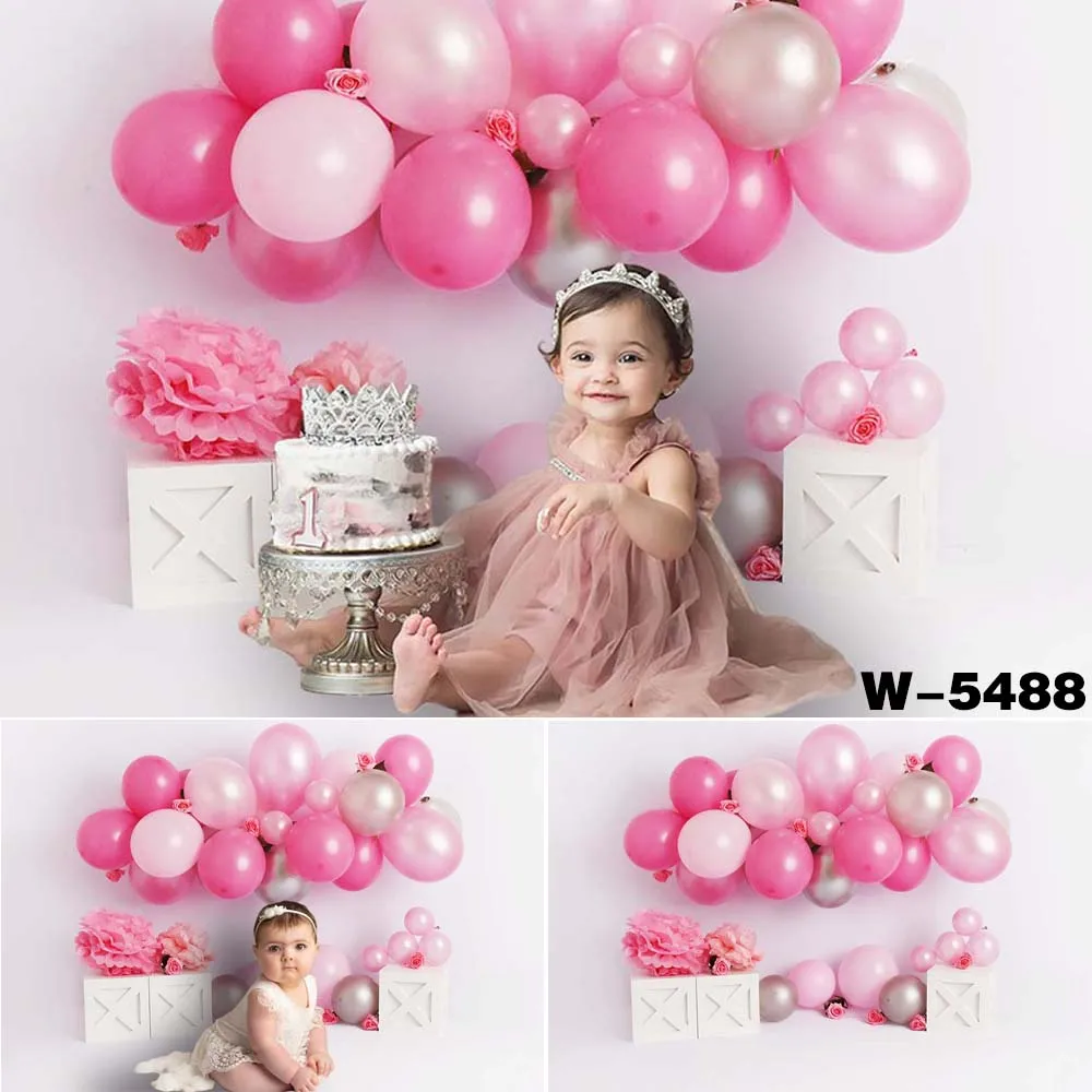 Фон для фотосъемки с изображением девушки на 1-й день рождения, целая стена с розовыми воздушными шарами, арочный торт, разбивной баннер, фотосессия, Портрет ребенка
