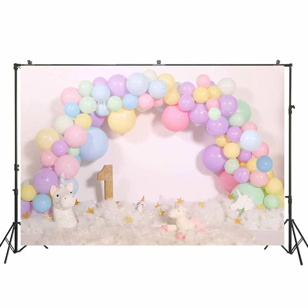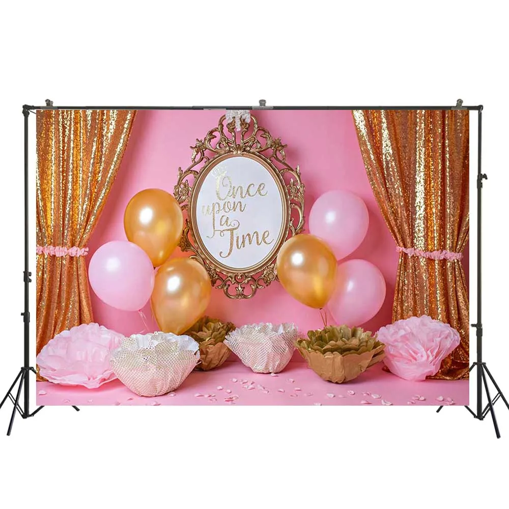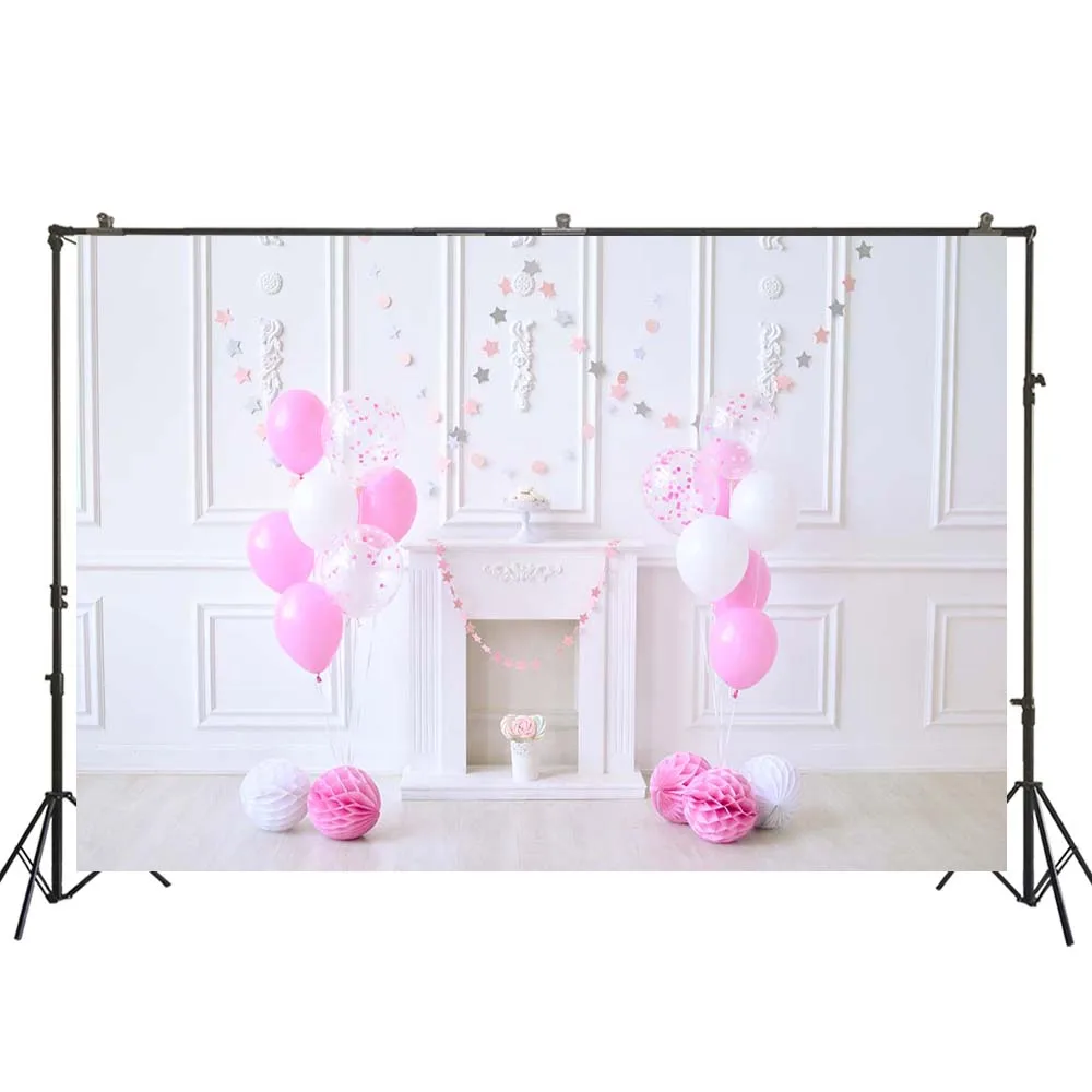 Фон для фотосъемки с изображением девушки на 1-й день рождения, целая стена с розовыми воздушными шарами, арочный торт, разбивной баннер, фотосессия, Портрет ребенка