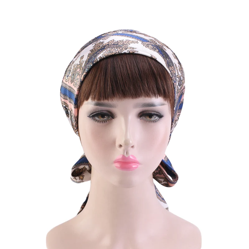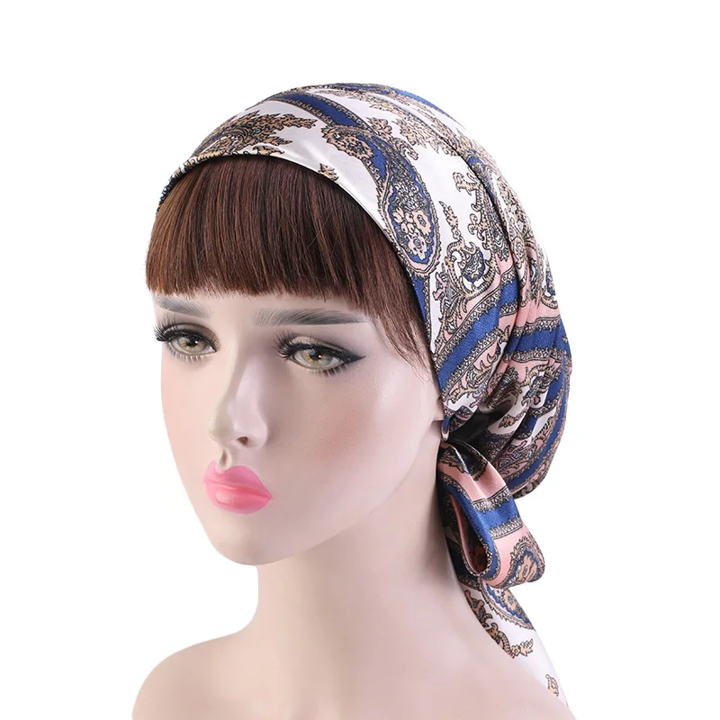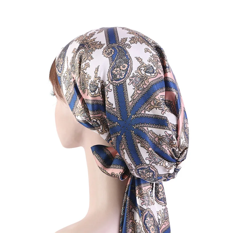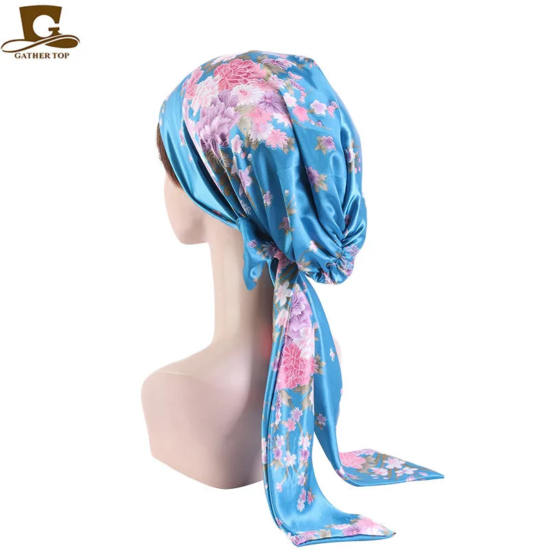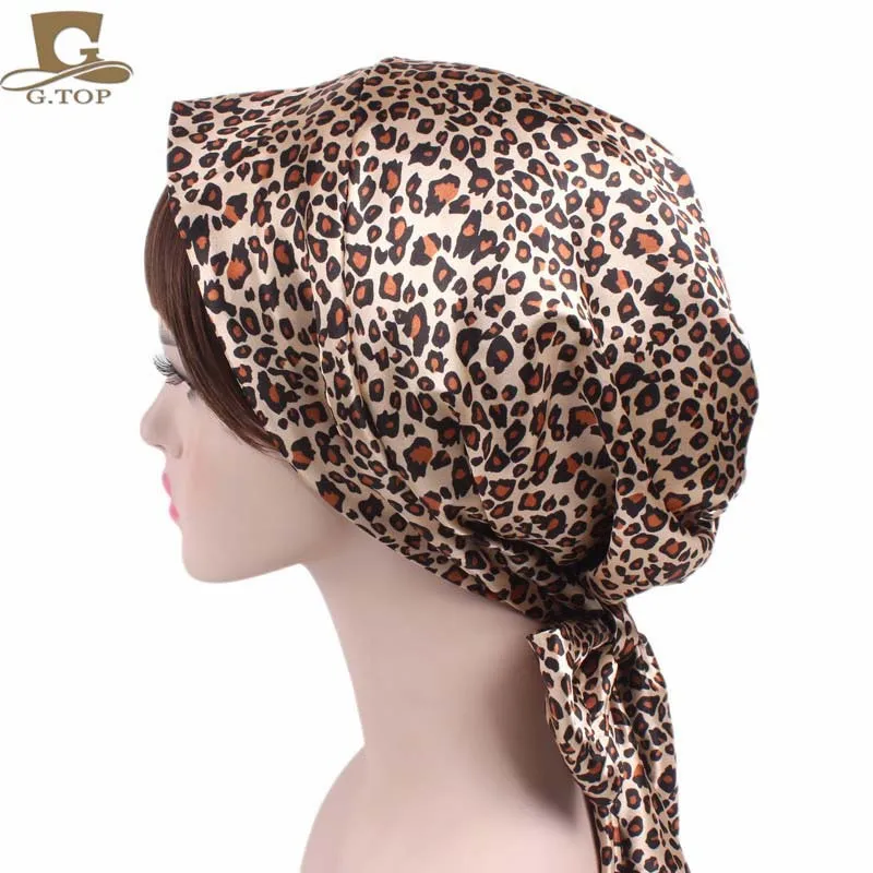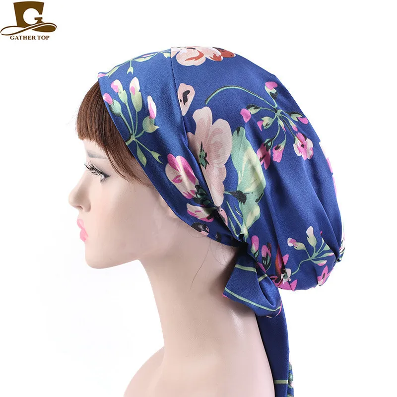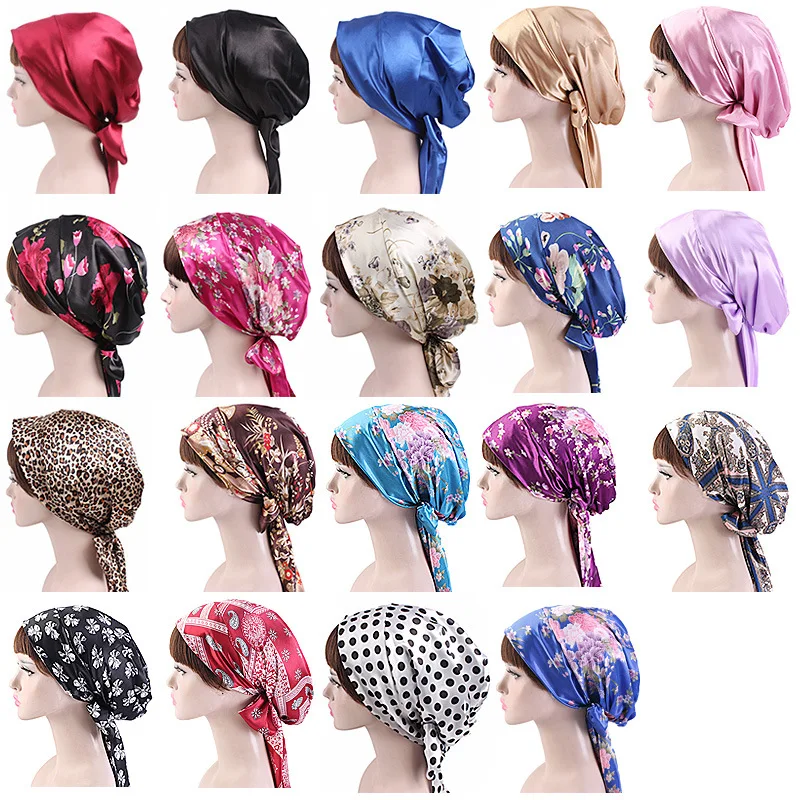 Женская шелковистая атласная Шапка-тюрбан с принтом, предзавязывающаяся женская шапка-хиджаб в мусульманском стиле для ночного сна, Мягкий головной убор, кепка для выпадения волос, Кепка