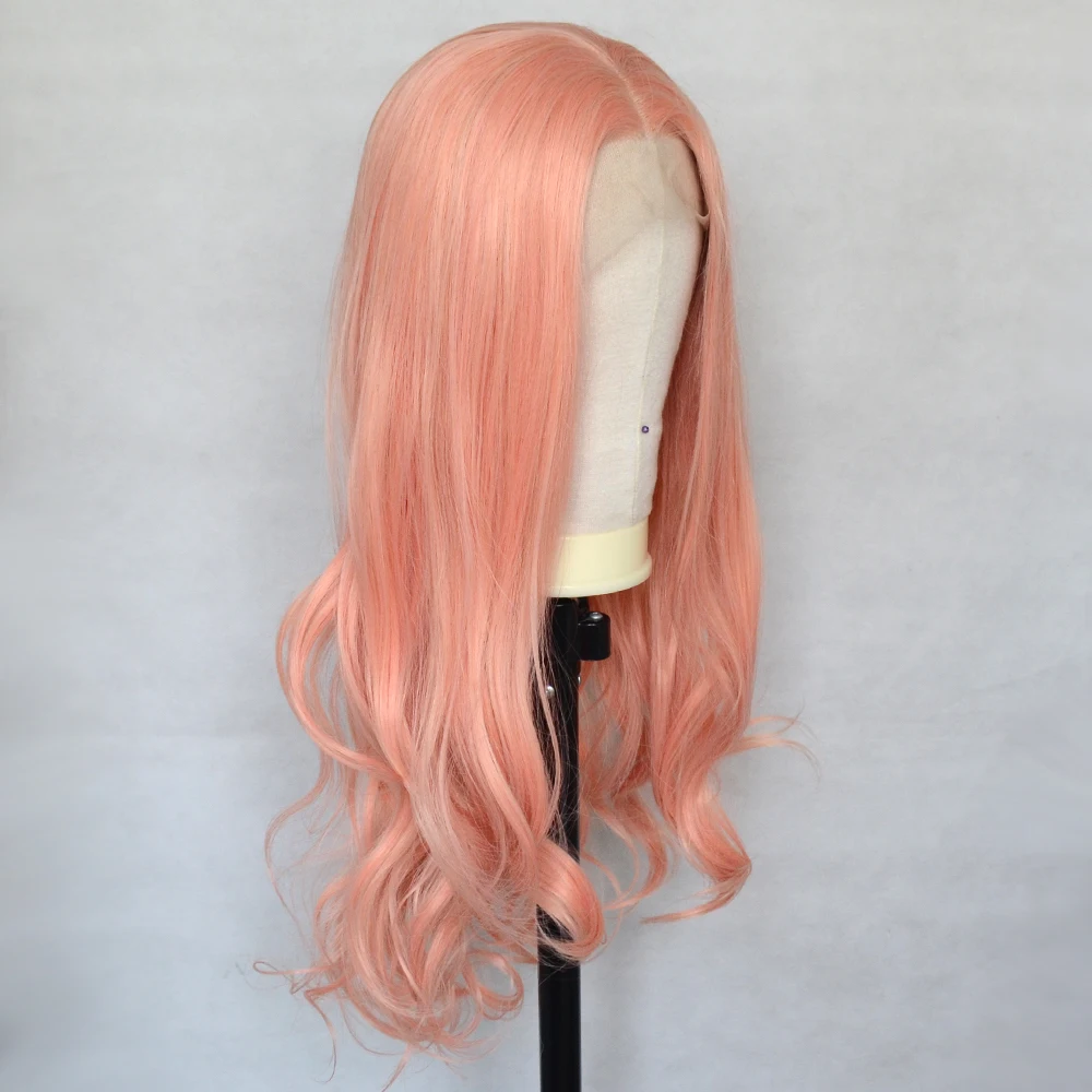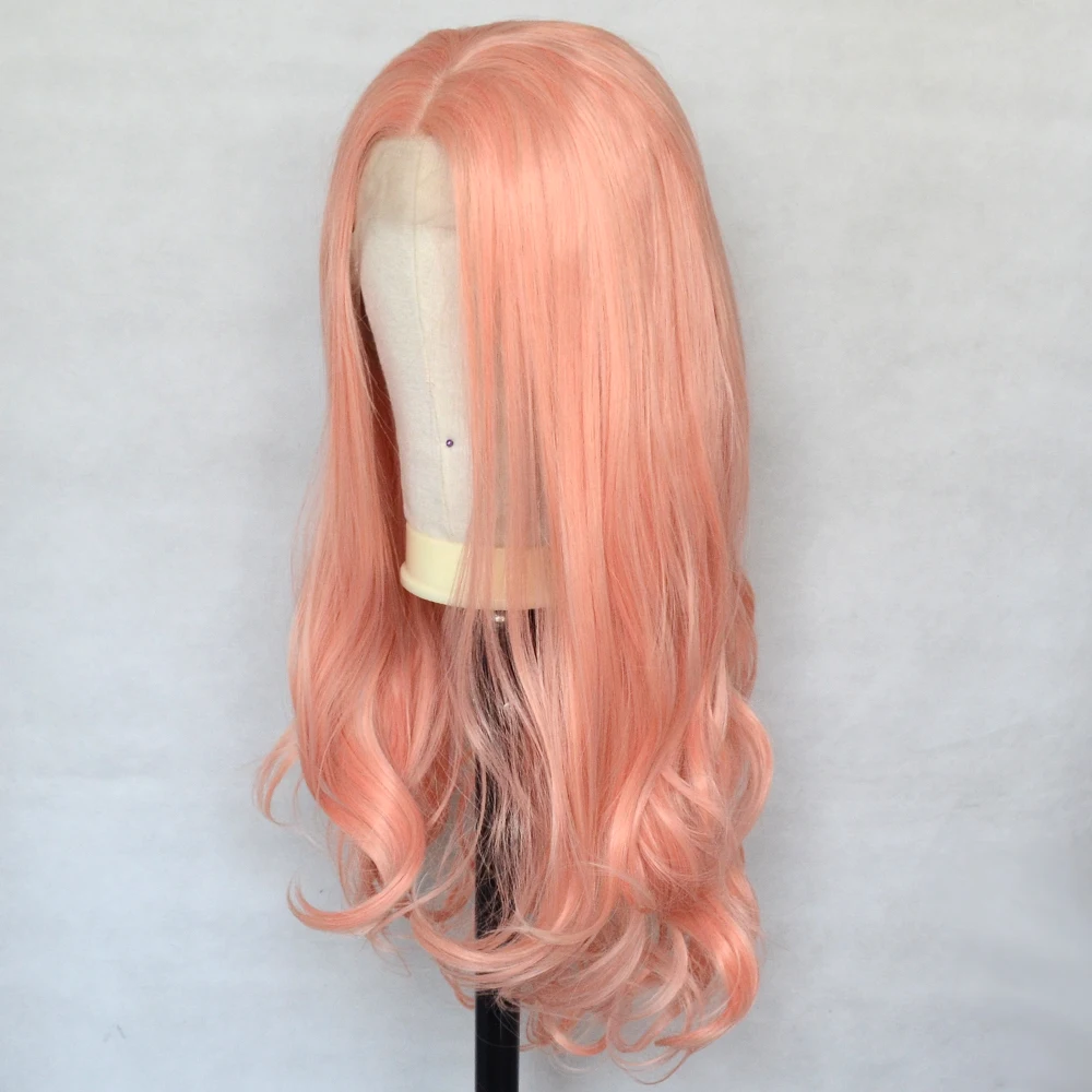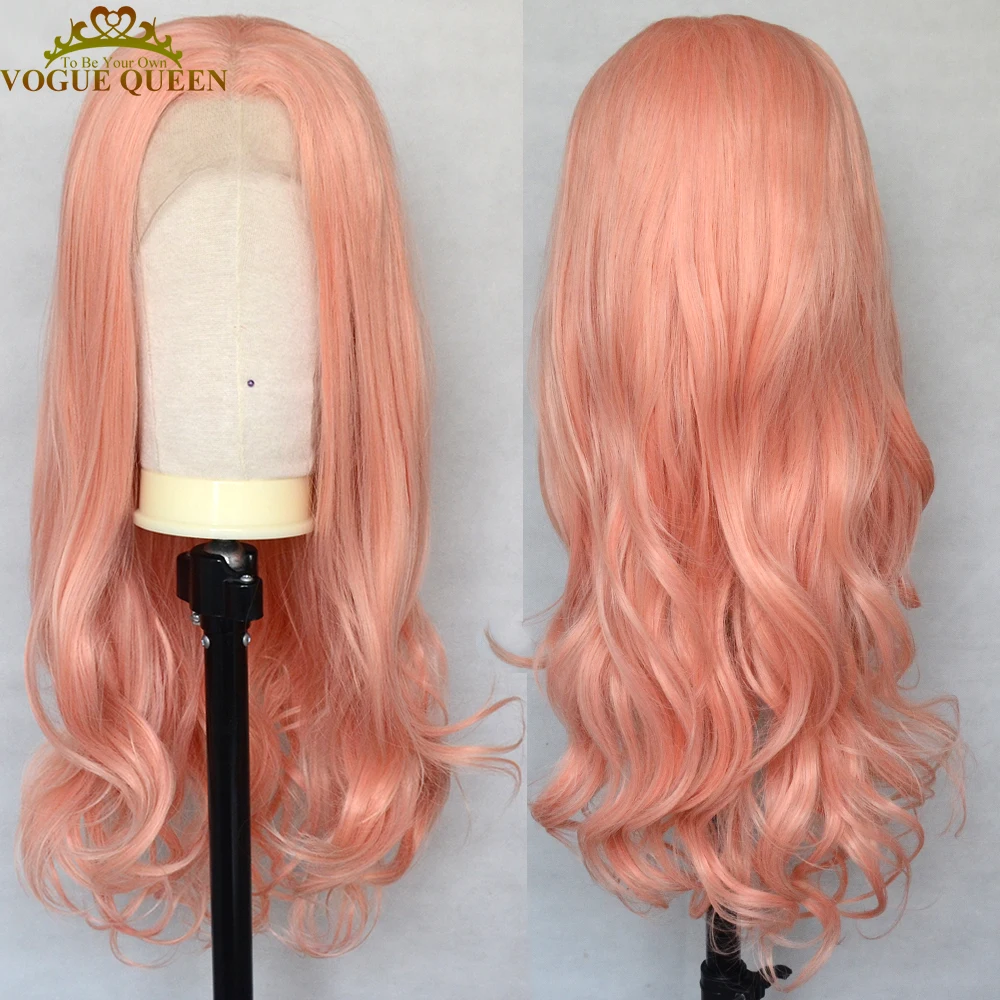Женский парик из синтетического кружева Vogue Queen, смешанный розовый длинный свободный волнистый термостойкий парик для косплея