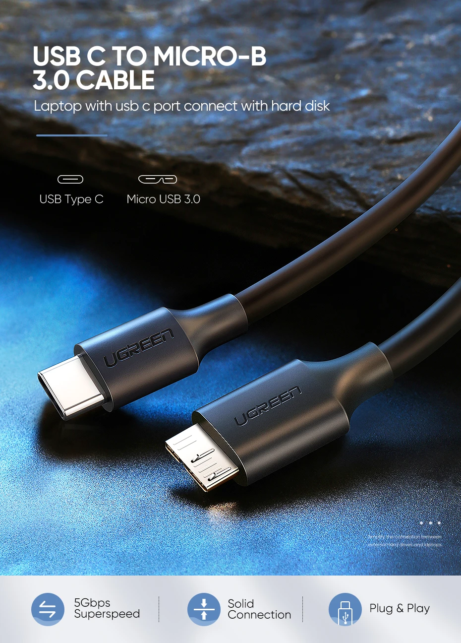 Кабель-переходник USB-CMicro USB 3.0 Ugreen, для подключения внешних жестких дисков SSD, для смартфонов, для MacBook