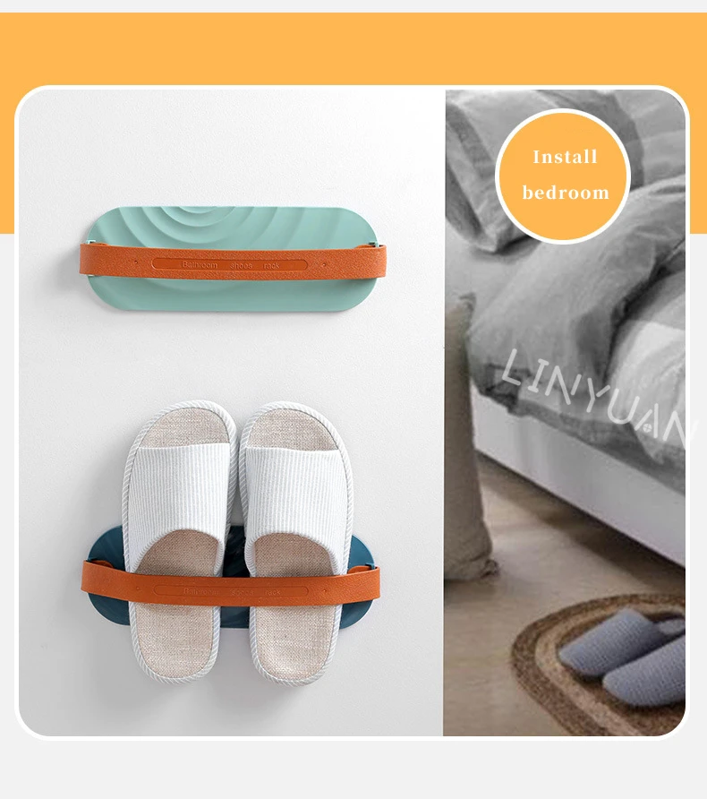 ★1 шт., бытовая настенная самоклеящаяся полка для обуви, ванная комната, Тапочки без перфорации, сливная подвесная полка, органайзер, держатель для обуви