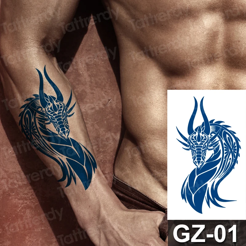 Мужская временная татуировка с чернилами в виде сока, долговечная татуировка, поддельные сексуальные боди-арт, тату с волком, драконом, для мужчин