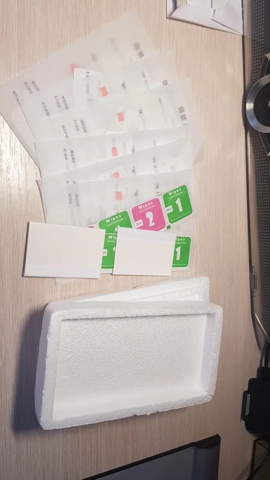 Пленки отправили достаточно быстро. С продавцом не общался. Заказывал на S9. В комплекте пришло 3 пленки и салфеточки. Влажные салфетки только грязнят, лучше протереть водкой или спиртом. 1ю пленку как и положено запорол - одну пленочку не снял и полез пальцами под основную. Смотрите видео на которое ссылается продавец и получится наклеить без проблем - все элементарно. При поклейке второй пленки залетели 2 пылинки, но по совету с ролика не стал парится и оставил - пленка реально выгнала весь воздух и притянулась к экрану, пылинок не видно. Сама пленка имеет небольшое олеофобное покрытие, но с родным на экране не сравнится. Наклеивается почти на всю поверхность стекла, по краям если присмотреться остаются микро зазоры, но это придирки. Из минусов только при свайпах от края экрана чувствуется острый край пленки.