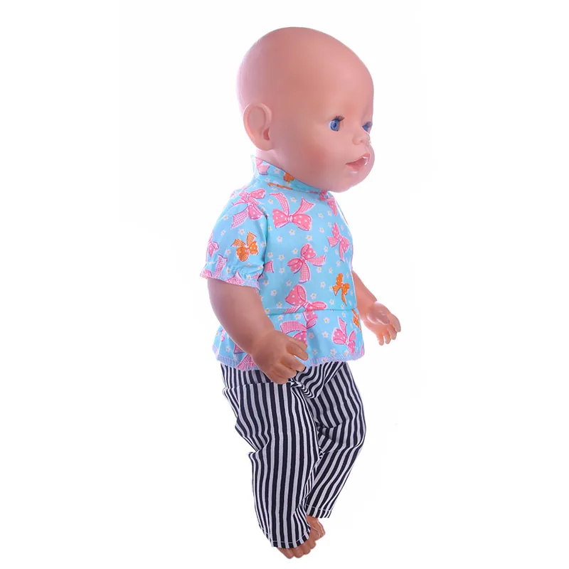 Одежда для кукол, милый костюм с животным рисунком, футболка + джинсы для 18 дюймовых американских кукол для девочек и 43 см, одежда для новорожденных, обувь для кукол