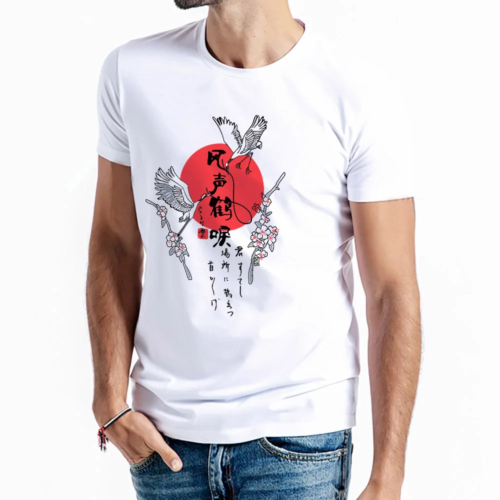 Футболка мужская с забавным принтом Красного журавля и солнца в китайском стиле, уникальная крутая модная уличная одежда в стиле Харадзюку, в стиле хип-хоп, лето