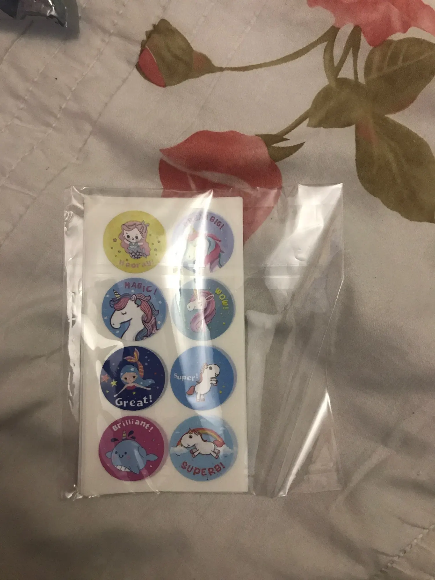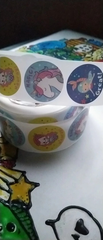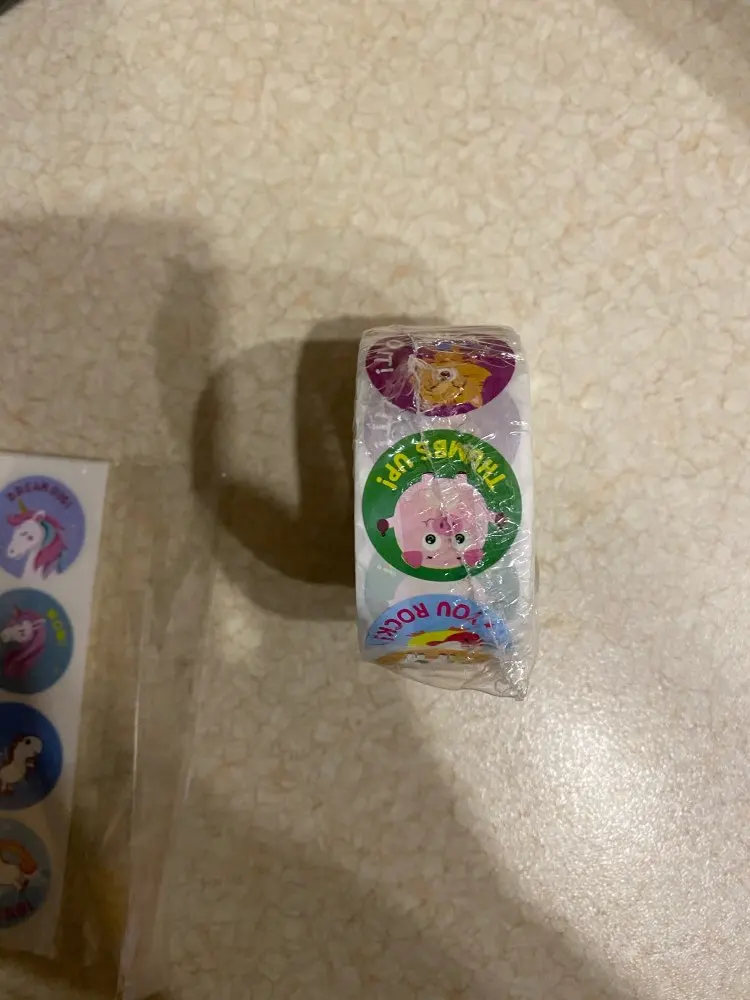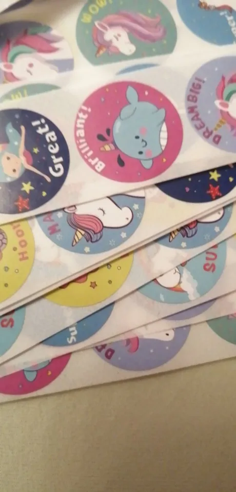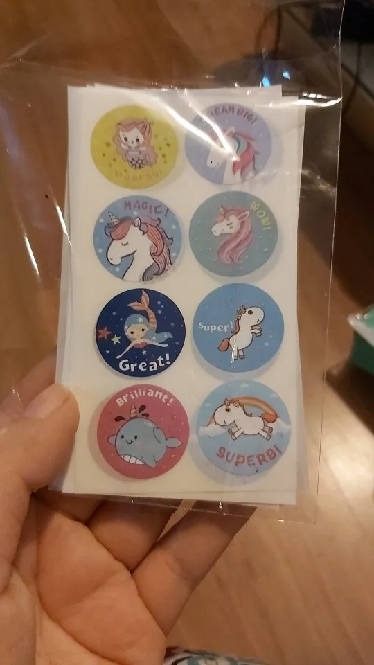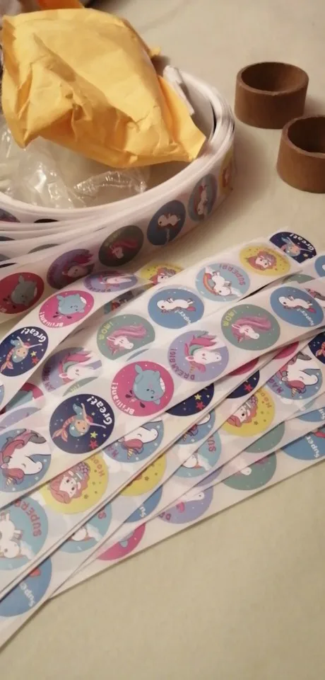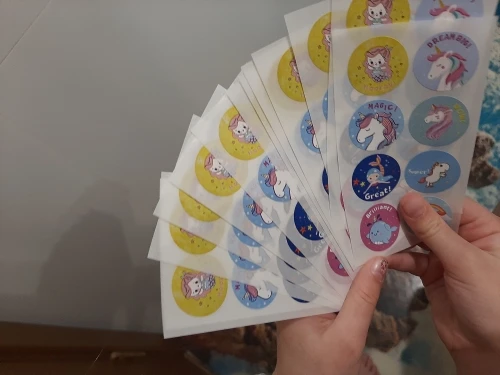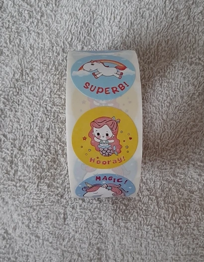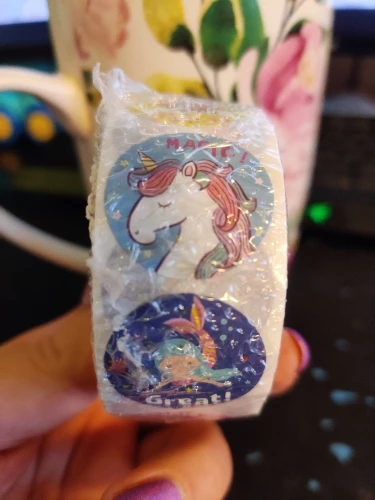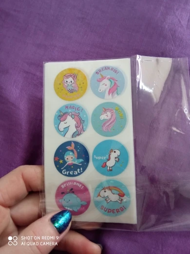 Очень красивые наклейки, планирую использовать в качестве мотиватора для детей) единственное, пришли на листах, а не в рулоне, зато чуть больше штук. Мне некритично было, на листах их даже видно лучше.
