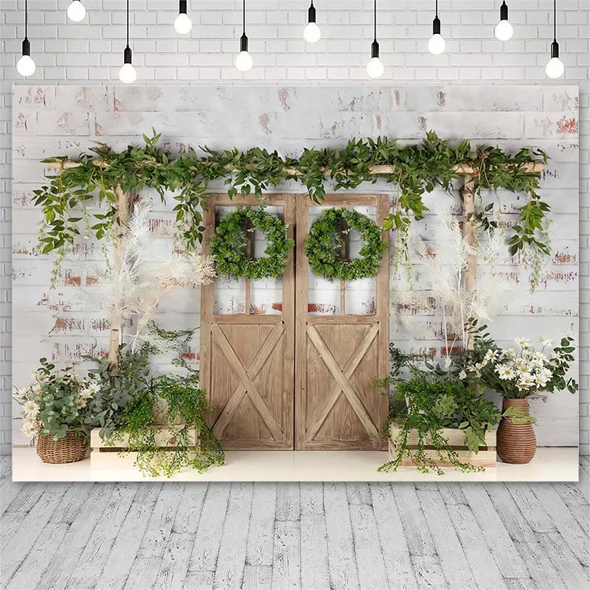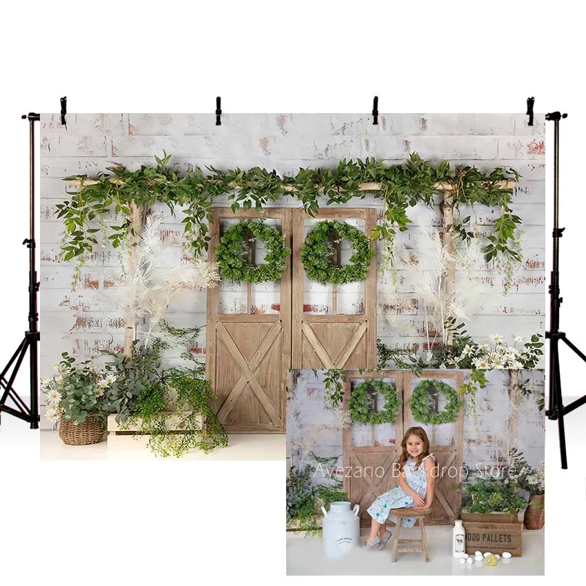 Avezano фон для фотосъемки день рождения весенний зеленый венок деревянная дверь цветок Портретные фоны фотостудия фотозона фотосессия