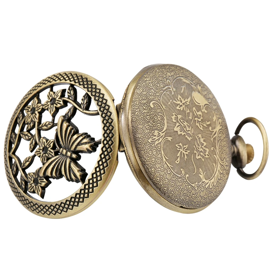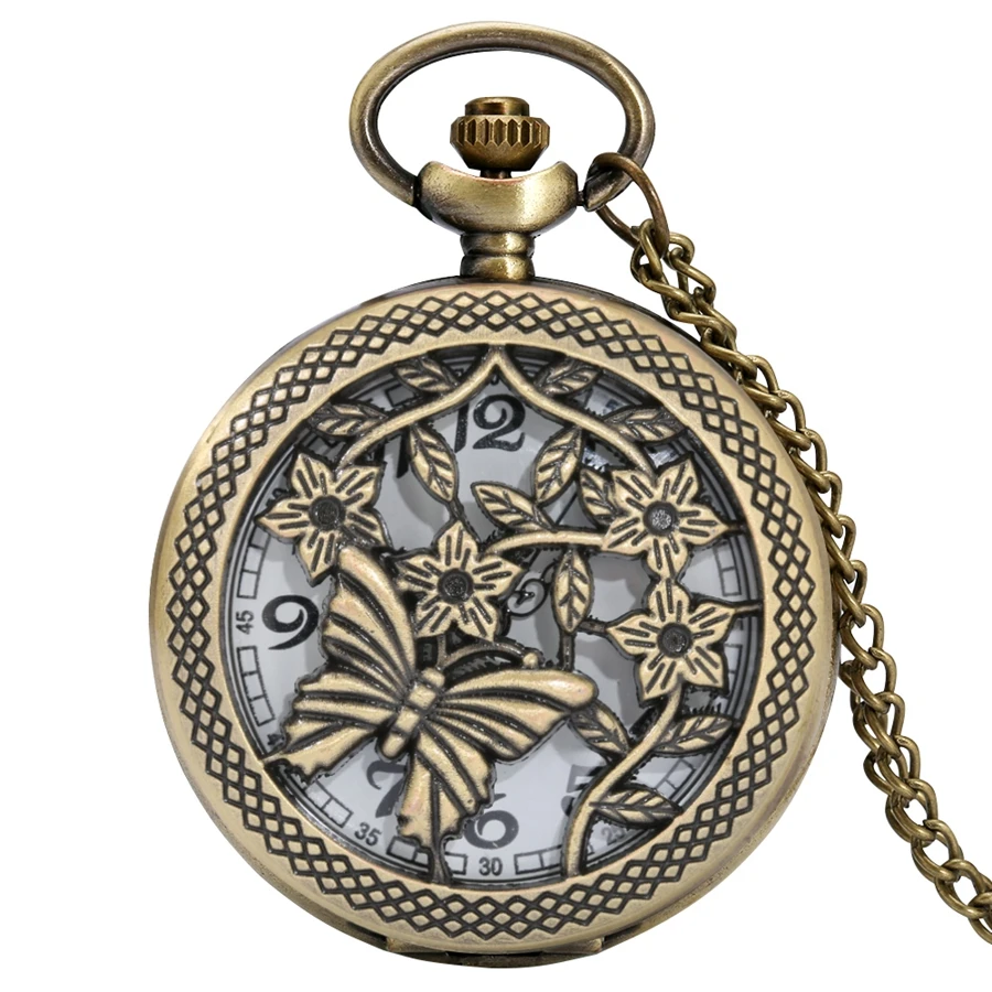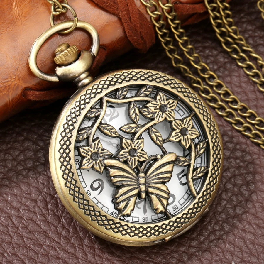 Старинные полые бабочки цветы Цветочные ротанга кварцевые карманные часы старая мода Цепочка-ожерелье под свитер кулон подарок для мужчин и женщин