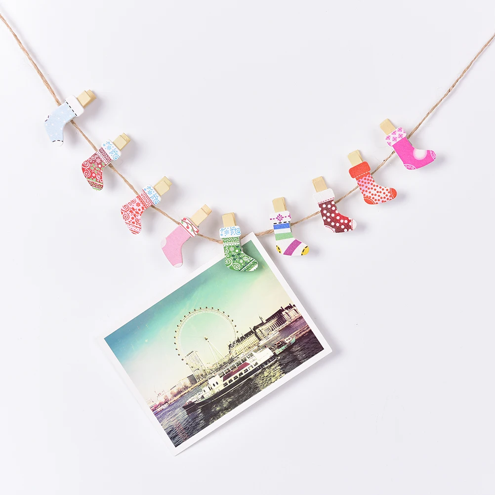 DIY Рождество носок висит обои фотоальбом веревка рамки деревянные ...