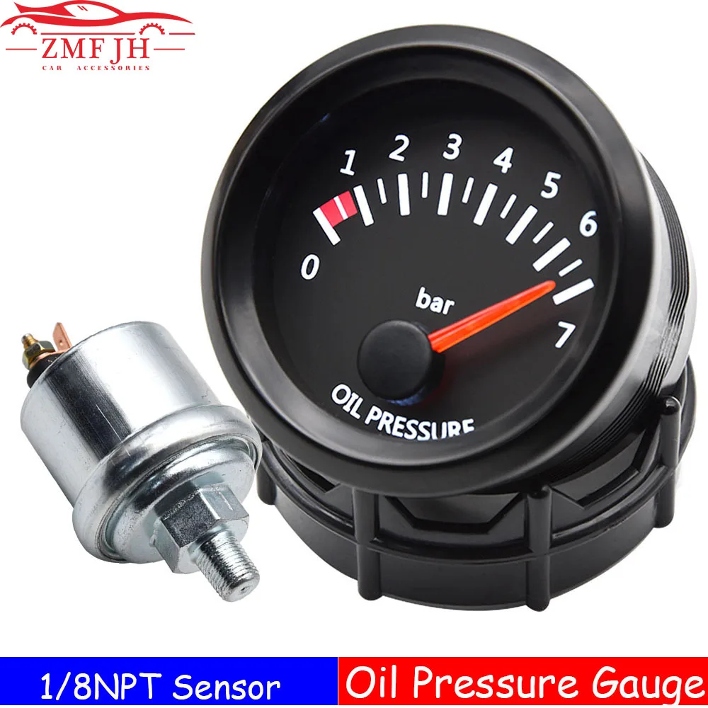 Универсальный гонок 52 мм Масляный Пресс ure Калибр 0-7 бар Масляный Пресс ure измеритель 18 NPT Масляный Пресс сенсор для автомобиля светильник