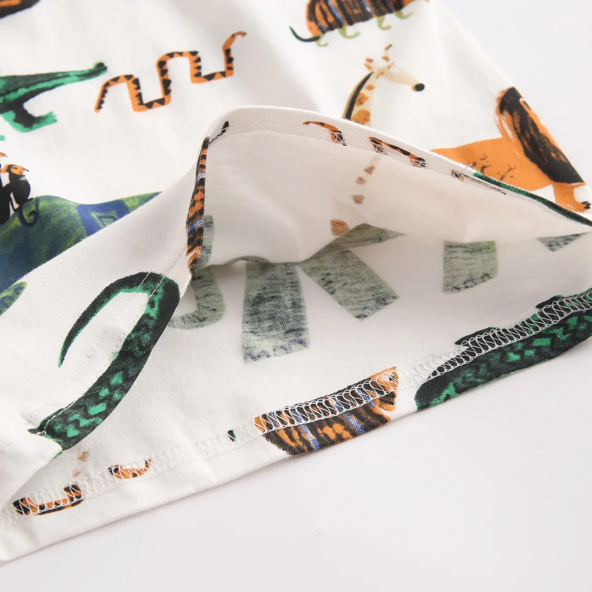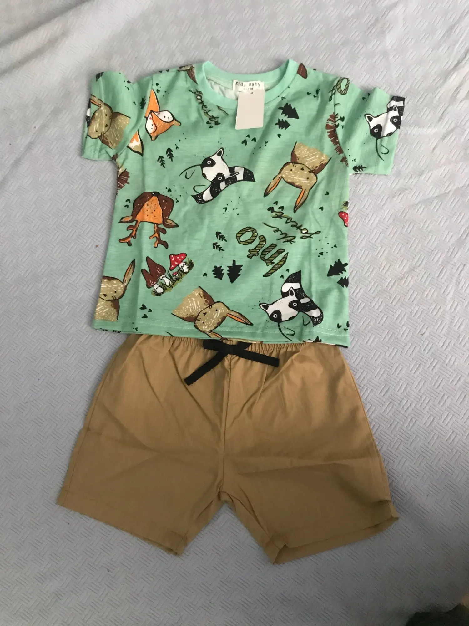 Летняя одежда для маленьких мальчиков с рисунком, хлопковые комплекты с короткими рукавами для новорожденных, модная одежда для малышей, 2 предметаТорговая марка: санлутозНомер изделия: BCS9045-SТкань: 100% хлопокСезон: лето, осень, веснаОсобенности: круглый вырез и милый узор для ребенкаИнструкция по уходу: машинная стирка; Прохладный гладить; Мягкая обработка при химической чисткеНе отбеливать, не сушить в стиральной машинеРазмеры0-6 м Длина топа 28 (см) Бюст 50 (см) Длина шорт 22 (см)6-12 м Длина топа 29 (см) бюст 54 (см) Длина шорт 23 (см)12-18 м Длина топа 31 (см) Бюст 58 (см) Длина шорт 24 (см)18-24 м Длина топа 34 (см) Бюст 62 (см) Длина шорт 25 (см)2-3 года Длина топа 36 (см) бюст 66 (см) Длина шорт 26 (см)* Размеры могут отличаться на 1-3 см.* На разных экранах машины может возникнуть разница в цвете.* Примечание: Все принты расписаны вручную. Рисунок может немного отличаться в каждой ткани.