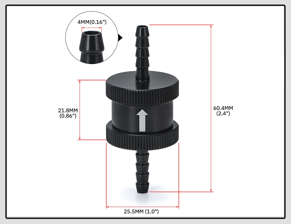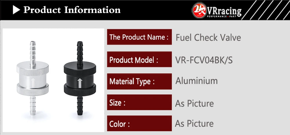VR-алюминиевый сплав 18 дюйма 4 мм Обратный односторонний топливный обратный клапан бензиновый дизельный VR-FCV04