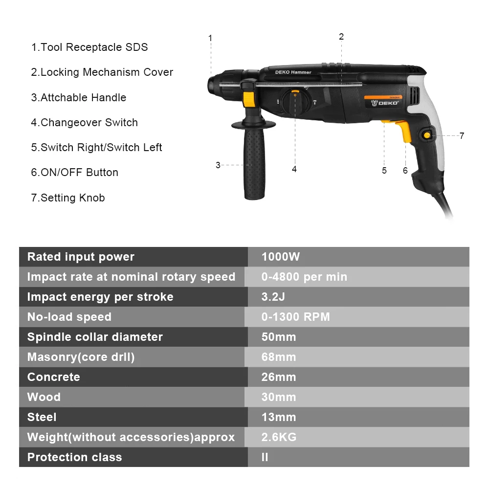 DEKO DKRH26H2DKRH20H3 Многофункциональный вращающийся молоток с BMC...