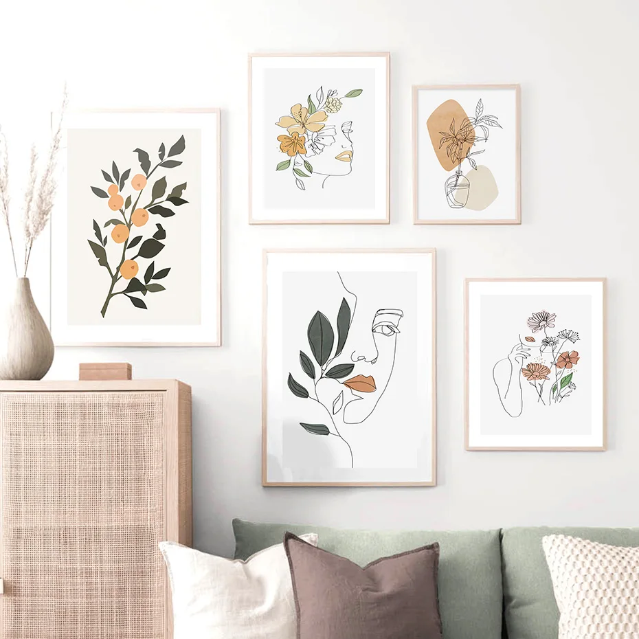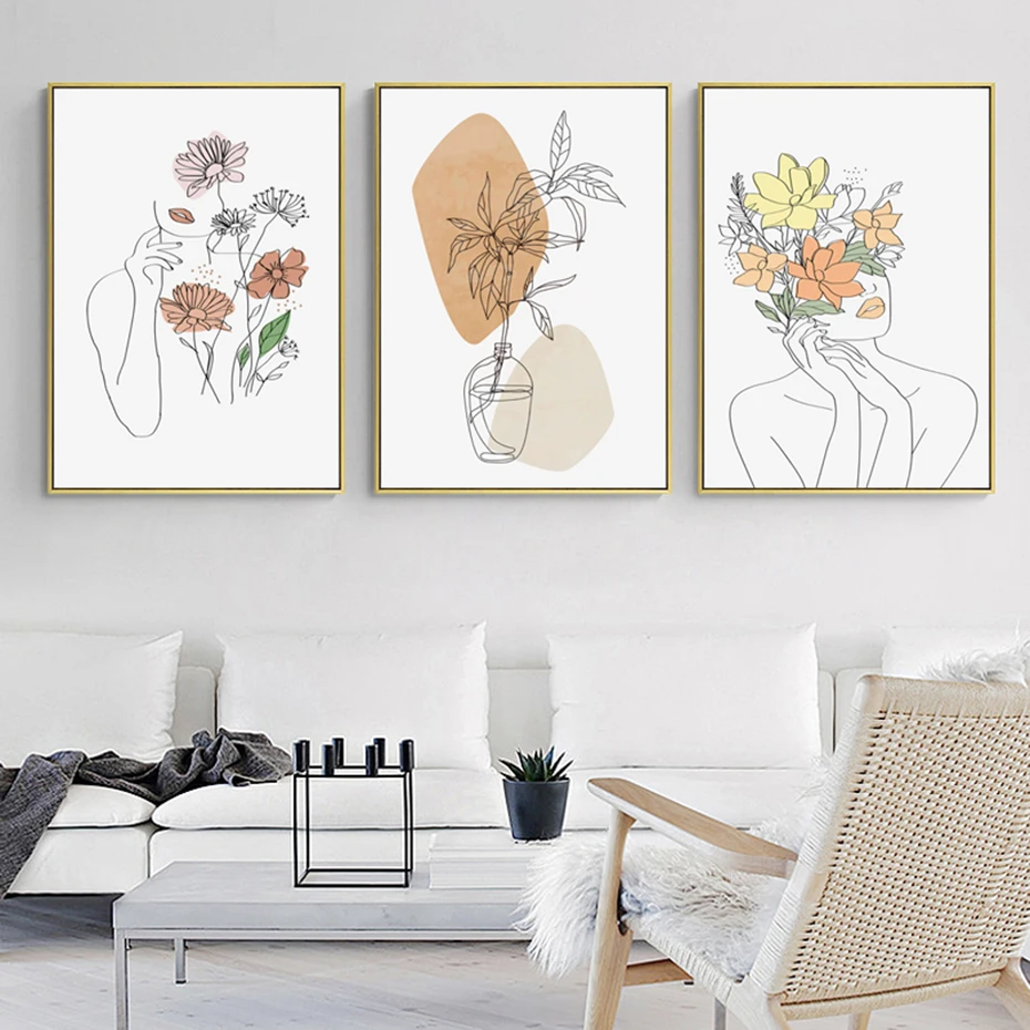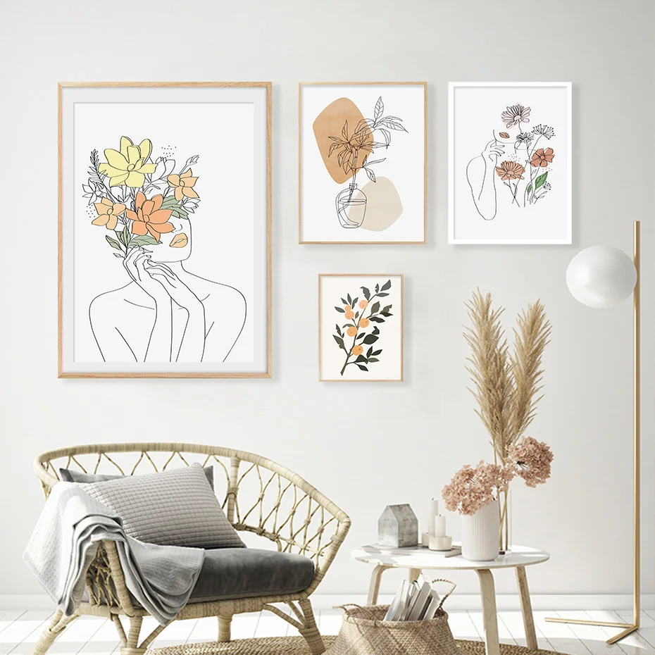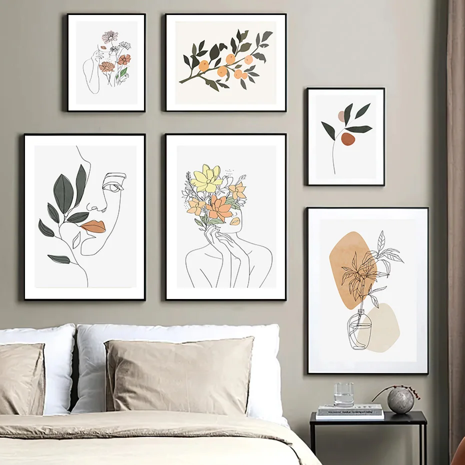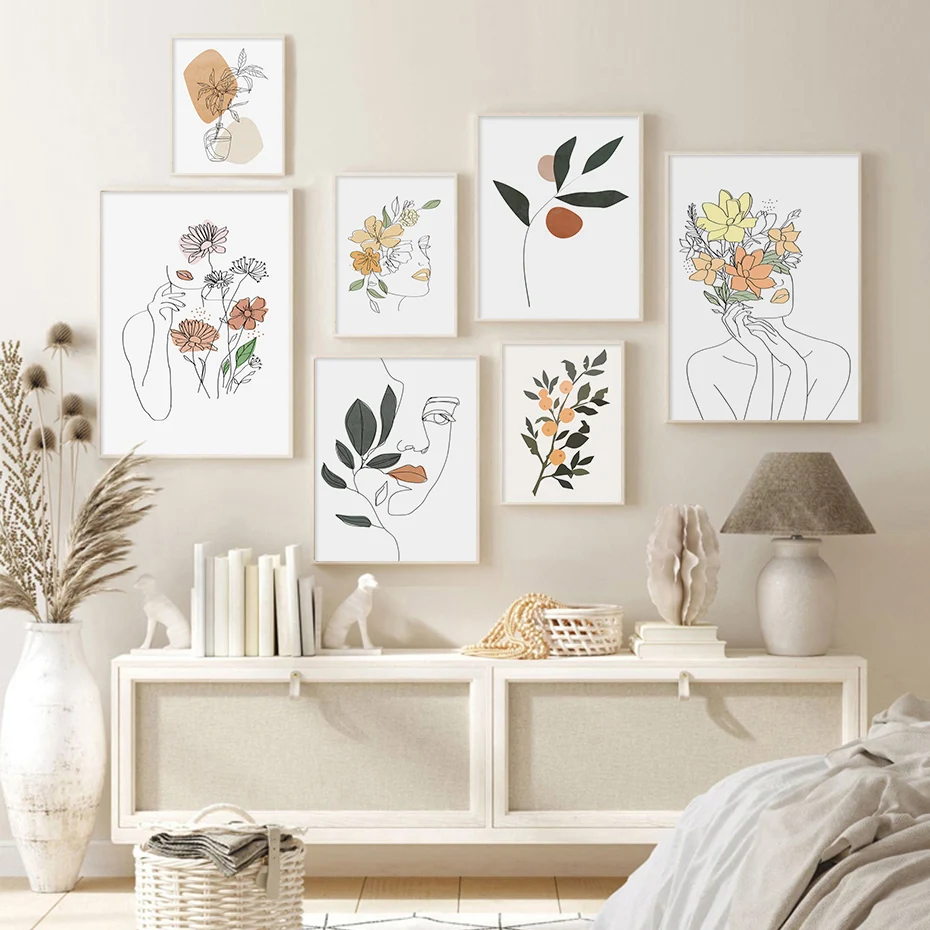 Богемная абстрактная Женская линия Искусство Цветочные современные плакаты Холст Картина Настенная печать картины Интерьер Гостиной домашний декор
