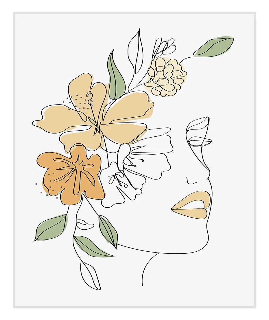 Абстрактный цветок женщина линия лица оранжевый художественный холс...