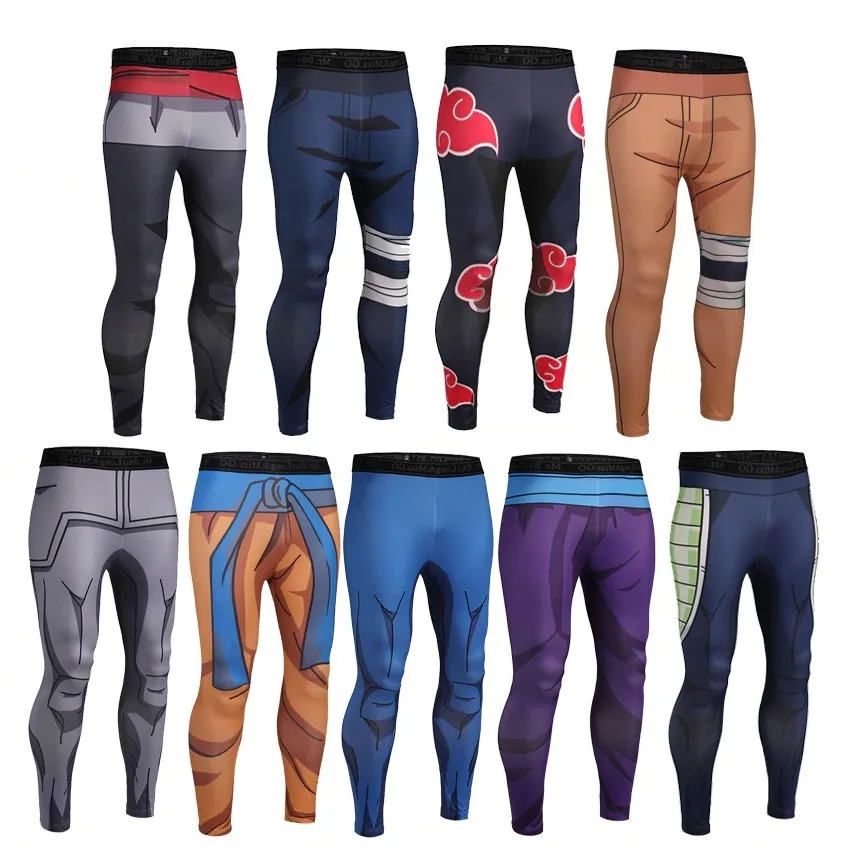 Мужские быстросохнущие брюки для фитнеса в стиле Харадзюку С аниме-персонажем, облегающие леггинсы для косплея и бодибилдинга, брюки, узкие спортивные штаны, 2021