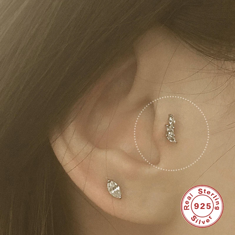 Aide 925 пробы серебряные серьги-гвоздики с циркониевой нитью в виде конского глаза, серьги для пирсинга уха