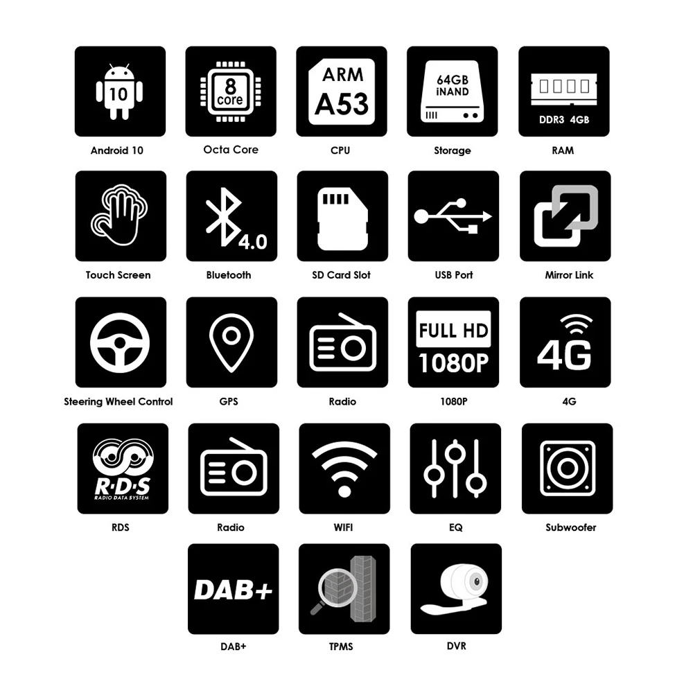 Автомобильный мультимедийный плеер с GPS, 4 Гб ОЗУ, 64 Гб ПЗУ, Andr...