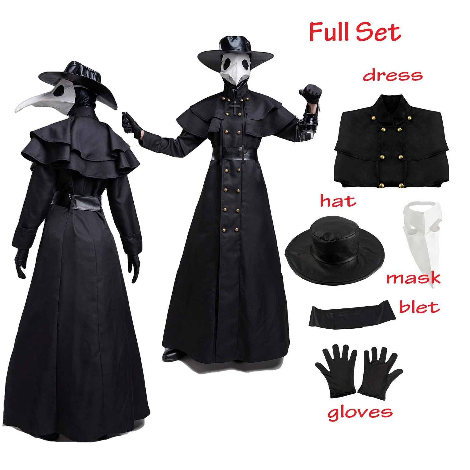 Средневековый Халат с капюшоном на Хэллоуин, костюм Доктора чумы, маска, шляпа для мужчин, монахов, костюм в стиле стимпанк для косплея, священника, накидка волшебника, накидка