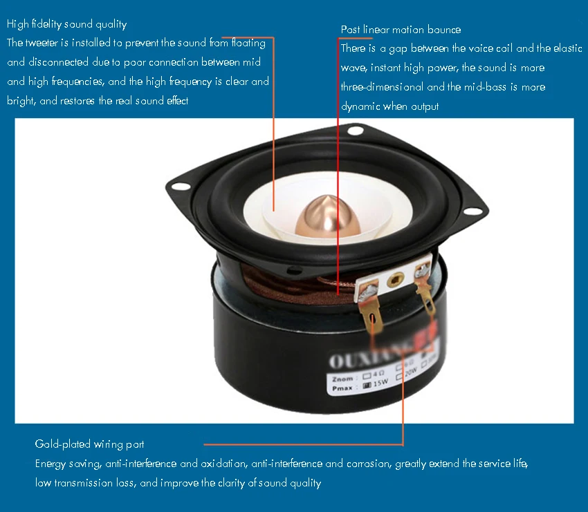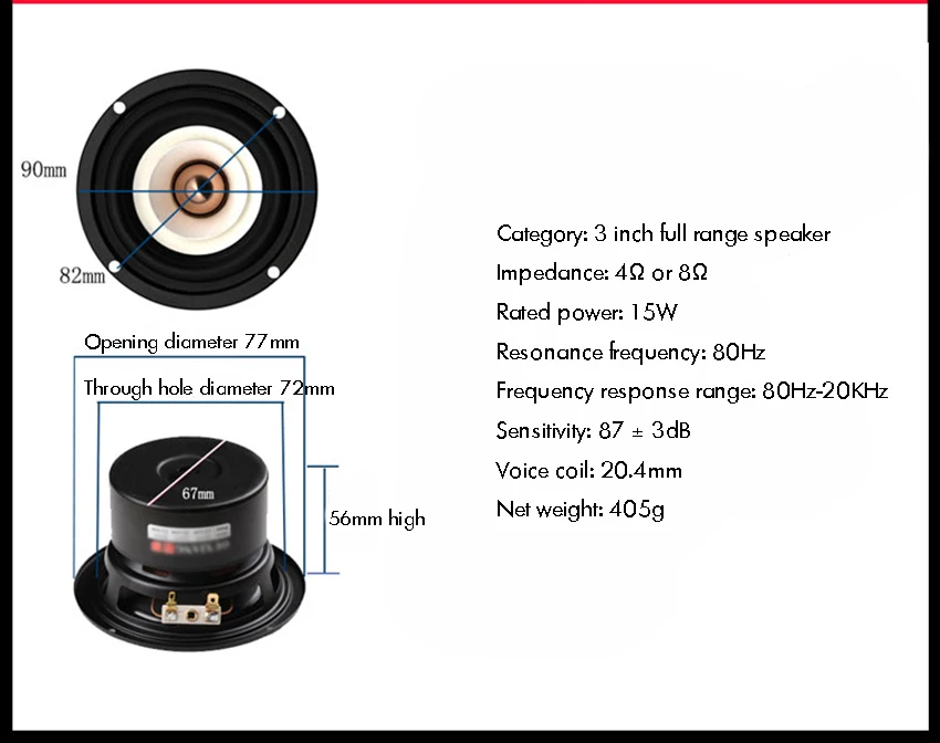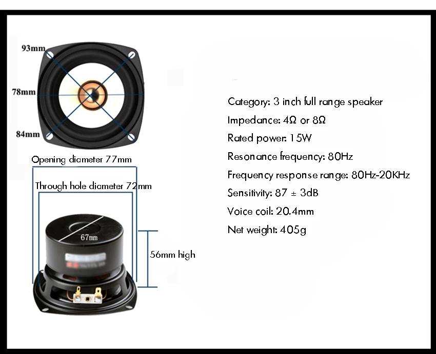 15 Вт мини 3 дюйма HiFi Полнодиапазонный динамик 4 Ом 8 Ом антимагнитный домашний стерео Бас громкий динамик 87 дБ Высокочувствительный динамик