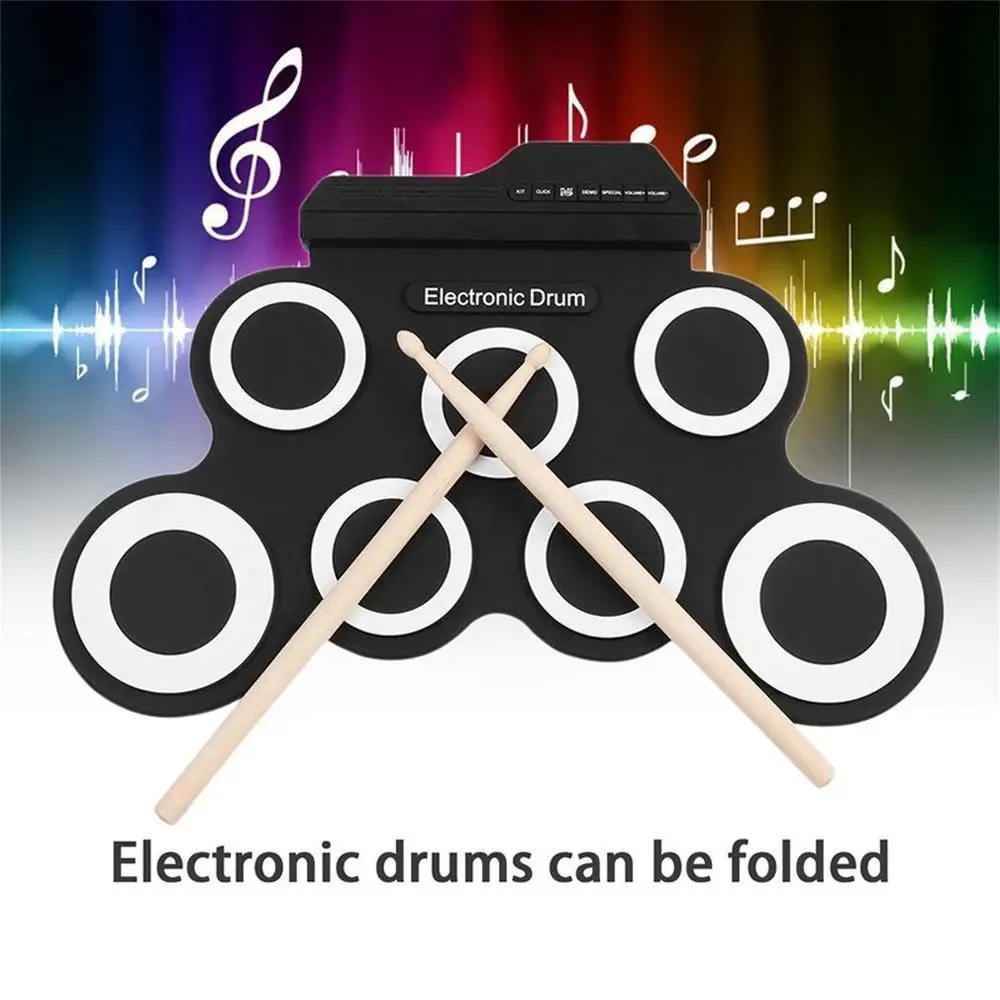 Детский складной электронный барабан, утолщенный силиконовый детский барабан, Детский Электронный ударный инструмент